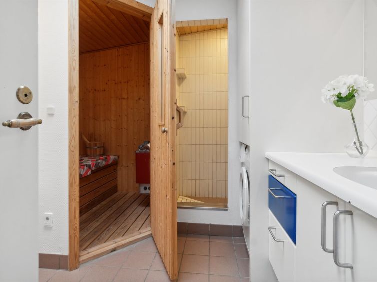 "Sanela" - 150m from the sea in Bornholm", 3 rom hus 80 m2. Passer for 6 voksne. Stue med, TV og radio. 1 rom med 2 senger. 1 rom med 2 senger. 1 rom med, 1 dobbeltseng. Kjøkken (stekeovn, oppvaskmaskin, 4 induksjonskomfyr, mikrobølgeovn, frys). Dusj/WC. Utsikt av havet. Fasiliteter: høy barnestol. Internett (trådløs LAN [WLAN]). Vennligst merk: røykfri bolig.