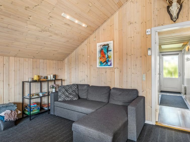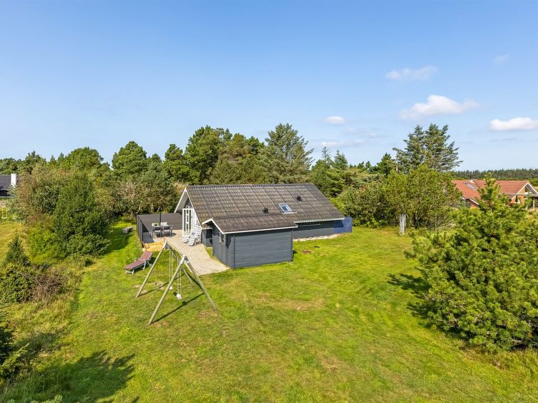 "Sanelma" - 900m from the sea in Western Jutland", 3 rom hus 72 m2. Passer for 5 voksne. Stue med, TV, CD-spiller, stereoanlegg og DVD. 1 rom med, 1 dobbeltseng. 1 rom med, 1 dobbeltseng. 1 rom med 1 seng. Kjøkken (stekeovn, oppvaskmaskin, 4 keramiske kokeplater, mikrobølgeovn, frys). Dusj/WC, boblebad. Fasiliteter: høy barnestol. Internett (trådløs LAN [WLAN]). Vennligst merk: røykfri bolig.
