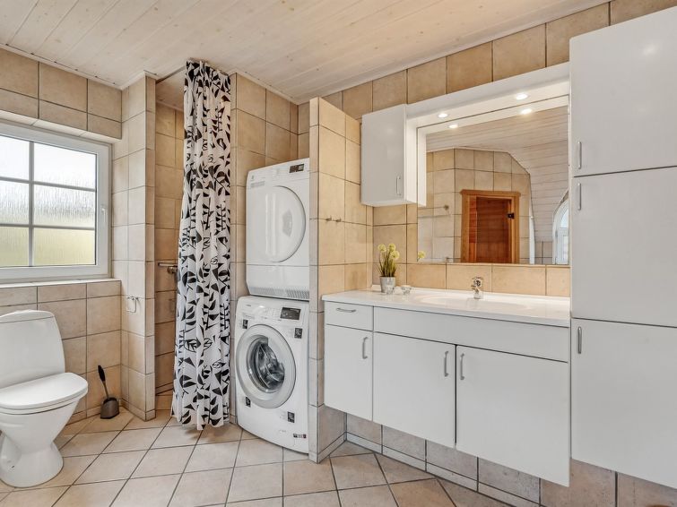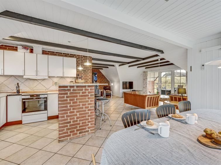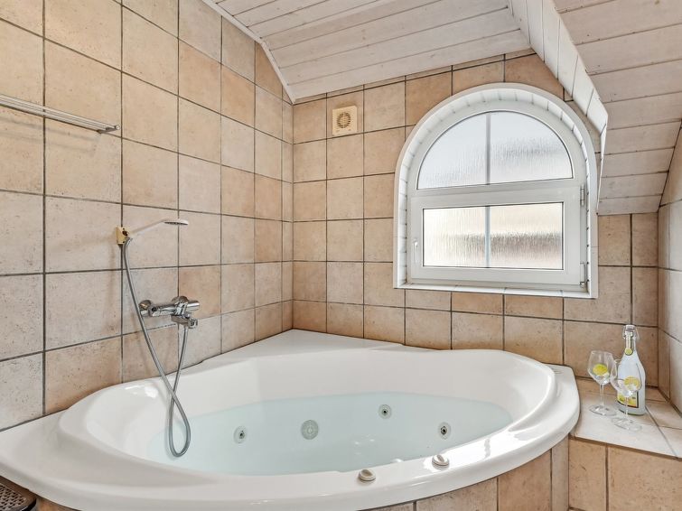 "Sannie" - 450m from the sea in Western Jutland", 4 rom hus 120 m2. Passer for 5 voksne. Stue med, TV og radio. 1 rom med, 1 dobbeltseng. 1 rom med, 1 dobbeltseng. 1 rom med 2 senger. 1 rom med 1 seng. Kjøkken (stekeovn, oppvaskmaskin, 4 induksjonskomfyr, mikrobølgeovn, frys). 2 dusjer/WC, boblebad. Fasiliteter: Internett (trådløs LAN [WLAN]). Vennligst merk: røykfri bolig.