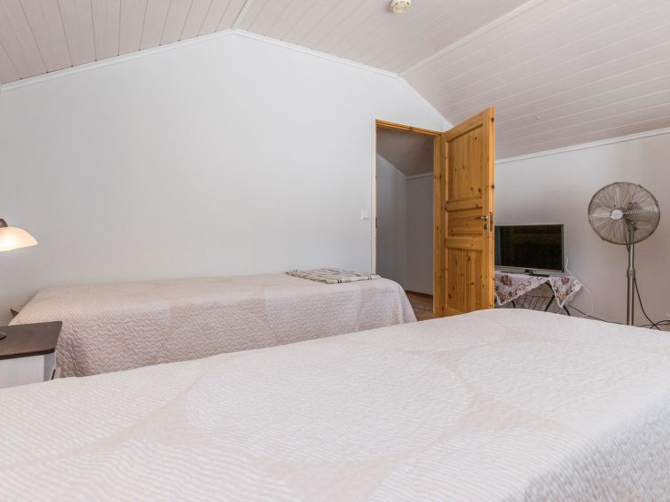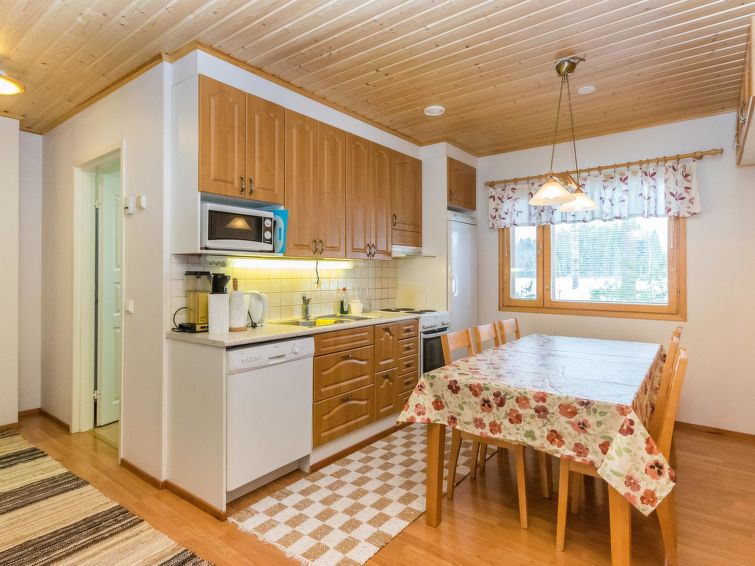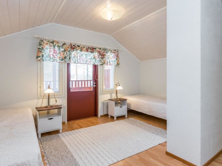 Cottage has mechanical ventilation with heat recovery facility. Electric smoker for fish. New, spacious cottage on shore of Lake Niskajärvi. Yard area is child-friendly, shallow shore, grass. Suitable eg. for two families. Bright and spacious bedrooms. Kitchen and washing facilities not the best possible for bigger groups. There is only one shower.