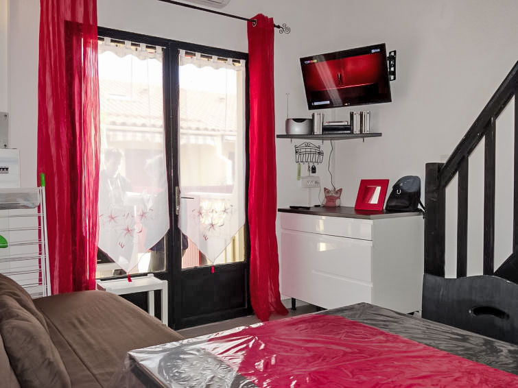 1 rom etromsleilighet 22 m2 på 2 etasjer. Stue/spisestue med, 1 dobbel sovesoffa (1 x 140 cm, lengde 190 cm), TV. Utgang til terrassen. Åpent kjøkken (miniovn, 2 keramiske kokeplater, mikrobølgeovn). Dusj, sep. WC. øverste etasje: åpen galleri med, 1 dobbeltseng (1 x 140 cm, lengde 190 cm). Airconditioning. Terrasse. Terrassemøbler. Fasiliteter: vaskemaskin. Internett (trådløs LAN [WLAN], ekstra). Parkeringsplass. Vennligst merk: røykfri leilighet. Røykvarsler.