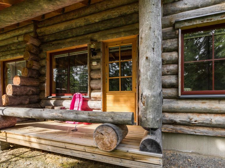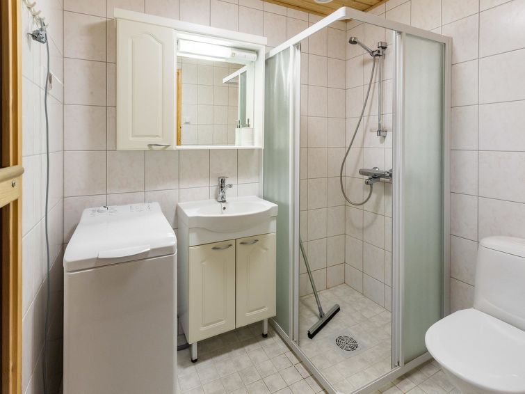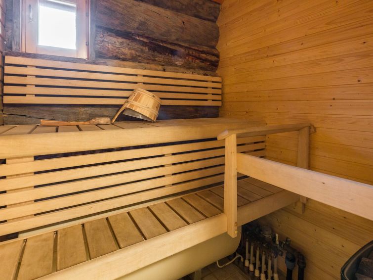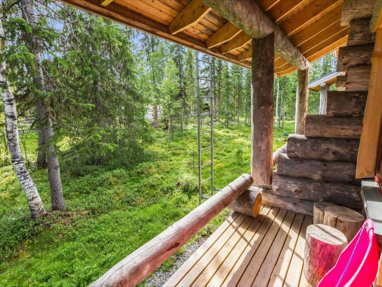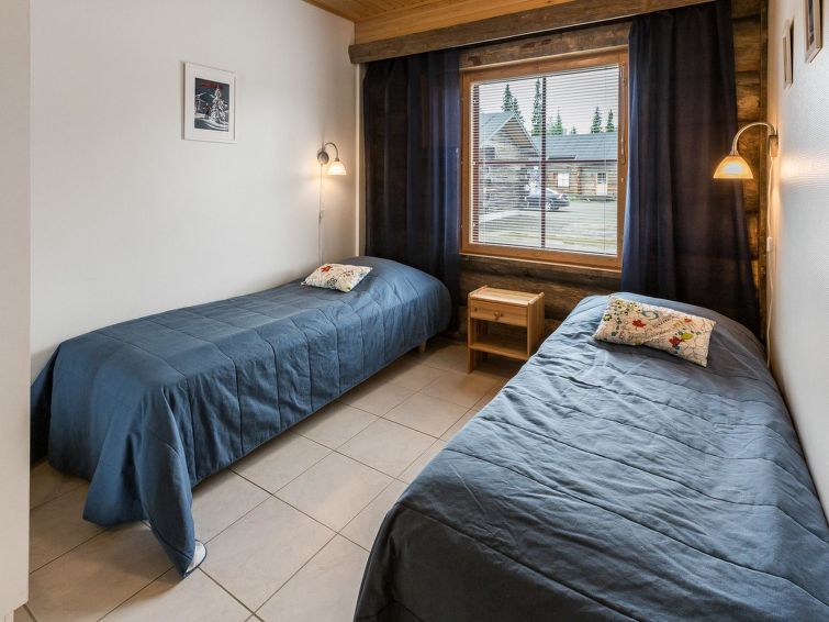 40 km north of Kolari, Lake Äkäslompolojärvi 1 km, swimming shore 2.5 km. Silverlog row house apartment 2008. Area 53 m² of which 11 m² on the loft. Living room/kitchen, 1 bedroom, both with 2 separate beds, in sleeping loft 2 separate beds, in living room/kitchen also convertible sofa/bed, sauna (electric stove), washroom/WC, sleeping loft has separate WC. The apartments share a ski maintenance room in the yard. Well-equipped silverlog row house apartment at Myllylehto in Äkäslompolo village (Myllylehdontie 2 As/apartment C10). Apartment located in quiet, neat cottage area very close to the ski trails. No pets allowed in apartment. Price includes final cleaning, bed linen for rent.