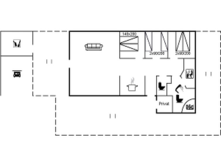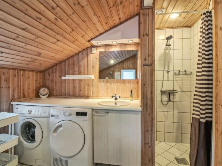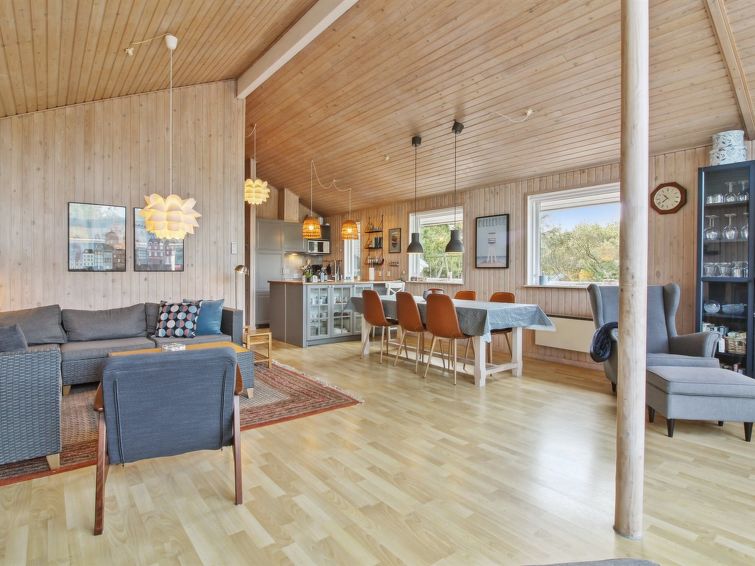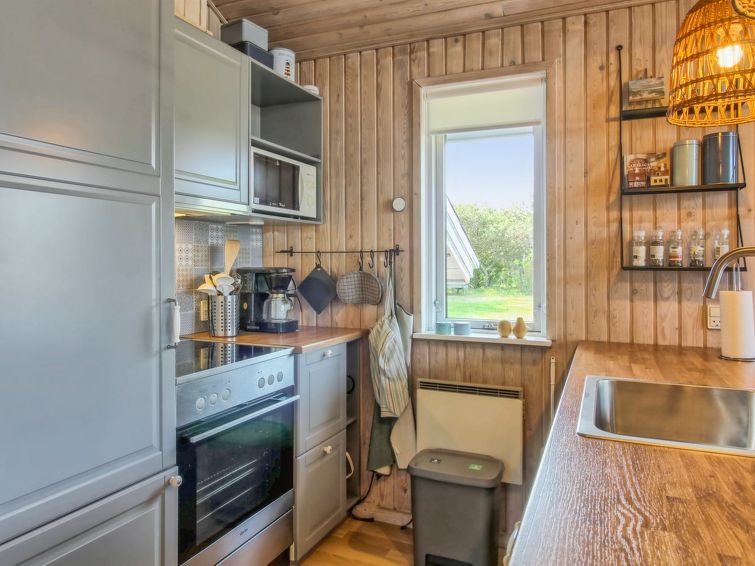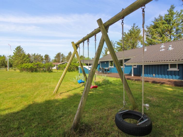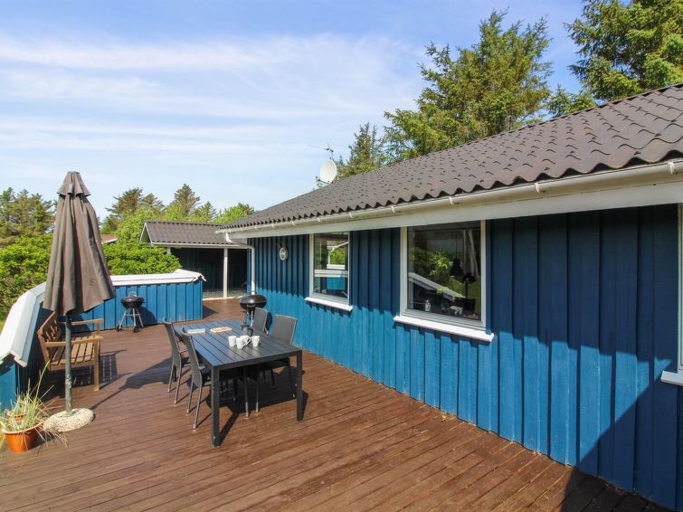 "Sari" - 600m from the sea in NW Jutland", 3 rom hus 100 m2. Passer for 6 voksne + 1 barn. Stue med, TV, radio og CD-spiller. 1 rom med, 1 dobbeltseng. 1 rom med, 1 dobbeltseng. 1 rom med 2 senger. Kjøkken (stekeovn, oppvaskmaskin, 4 keramiske kokeplater, mikrobølgeovn, frys). 2 dusjer/WC, boblebad. Fasiliteter: høy barnestol barneseng (ekstra). Internett (trådløs LAN [WLAN]). Vennligst merk: røykfri bolig.