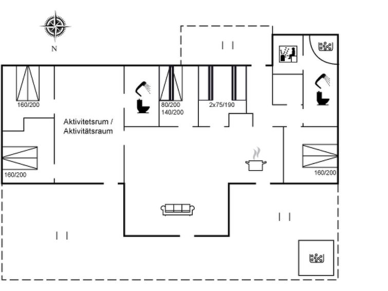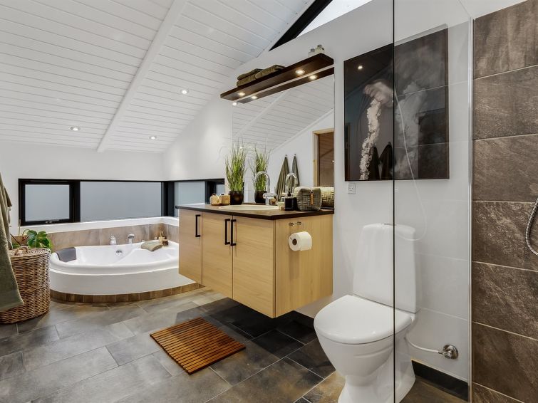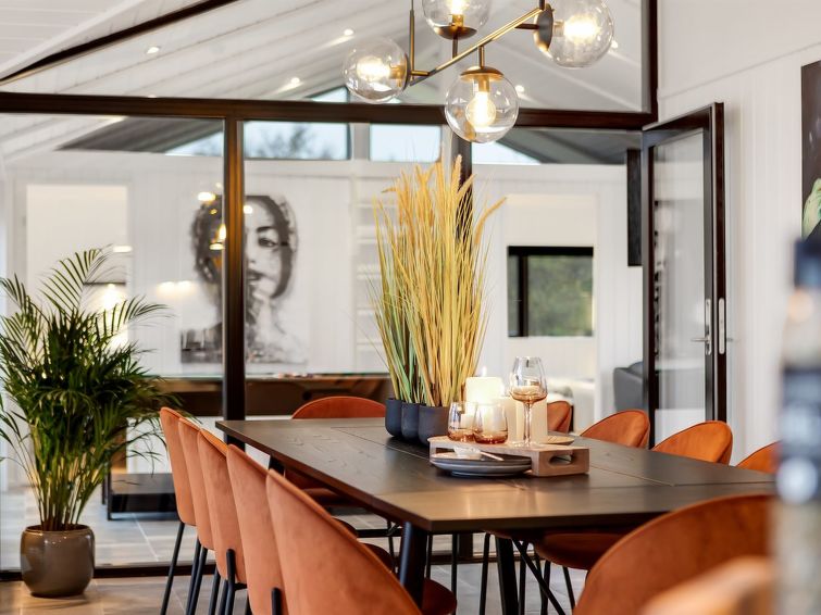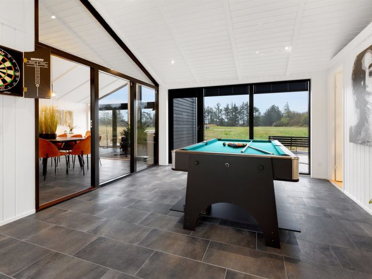 "Sasja" - 1.5km from the sea in NW Jutland", 5 rom hus 150 m2. Passer for 12 voksne + 1 barn. Stue med, TV og radio. 1 rom med, 1 dobbeltseng. 1 rom med, 1 dobbeltseng. 1 rom med, 1 dobbeltseng. 1 rom med, 0.5 x 2 køysenger, 1 dobbeltseng og 1 sovemulighet. 1 rom med, 2 x 2 køysenger. Kjøkken (stekeovn, oppvaskmaskin, 4 induksjonskomfyr, mikrobølgeovn, frys). 2 dusjer/WC, boblebad. Fasiliteter: høy barnestol barneseng (ekstra). Internett (trådløs LAN [WLAN]). Vennligst merk: røykfri bolig. Max kjæledyr / hund tillatt 1 kjæledyr / hund tillatt.