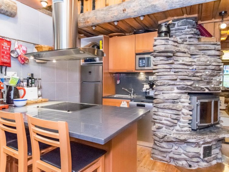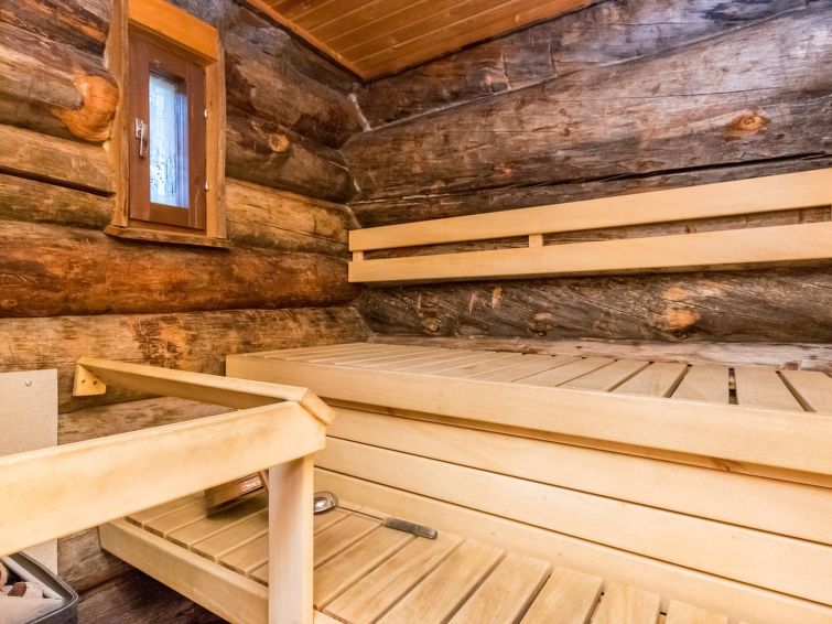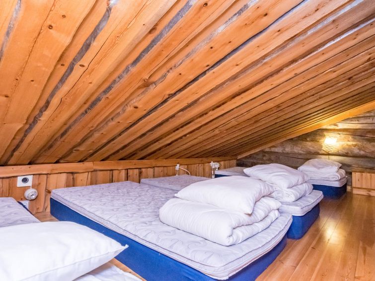 50 km north from Kemijärvi. Semi-detached log apartment located in Pyhä ski resort. Totally renovated in 1998. Bedroom with double bed, loft with 4 mattresses, bathroom, sauna (electric) and separate toilet. Cozy terrace with gas grill. There is also a small bed for a child (1-3 years) in the cabin. In addition to the standard coffee machine, the kitchen has both Nespresso and Paulig expresso machines.