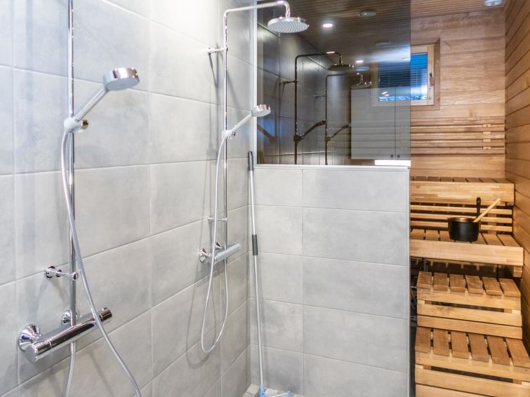 New apartment (2022) in semi-detached house located in the popular Rukariuta district. On the ground, 2 bedrooms, with 2 beds in each. IIn addition, there are 2 beds and a spreadable sofa bed in the loft (high enough to stand). A spacious terrace on the backyard. Living room/kitchen, electric sauna.