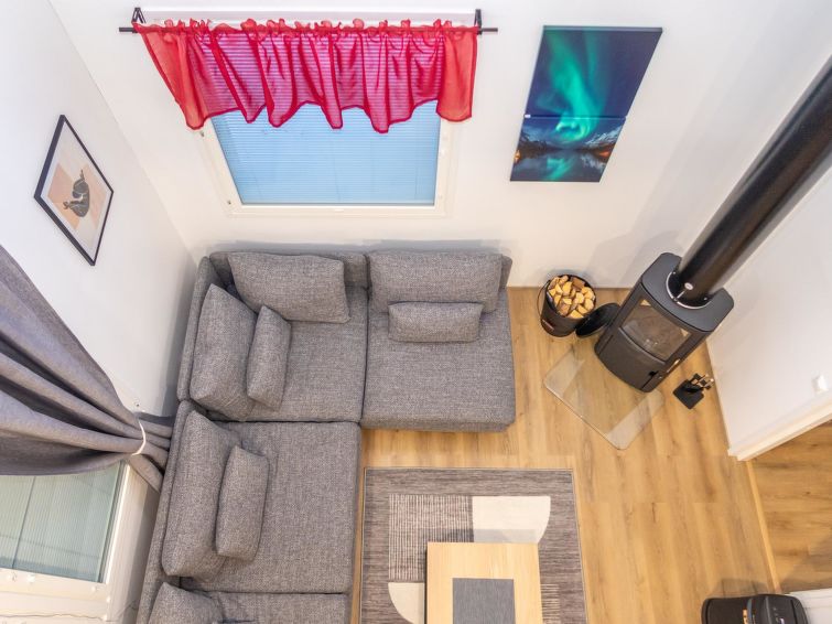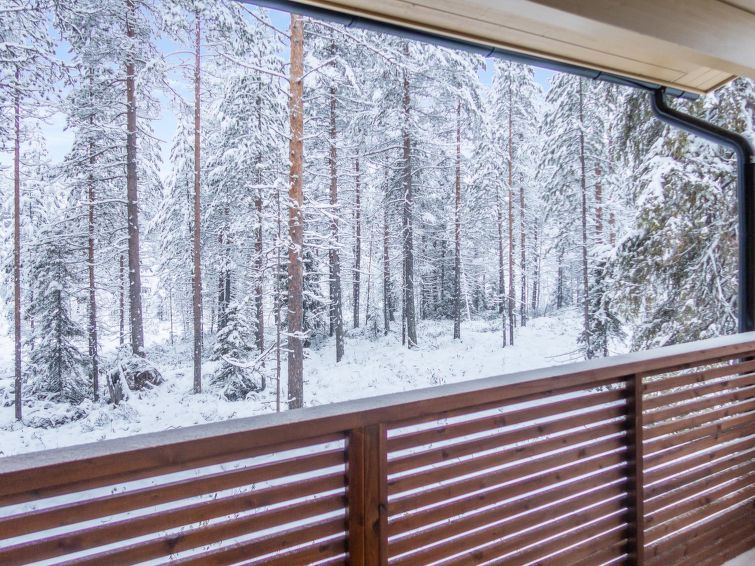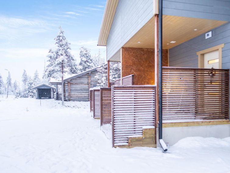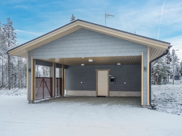 25 km to the north from Kuusamo, Ruka village (West-Ruka) 3.2 km. Semi-detached apartment completed in 2022. Ground floor 63 m² and loft 25 m². Additional information: Final cleaning is included in the price. A warm garage for snowmobile (35 m²) shared with the other side of semi-detached house.