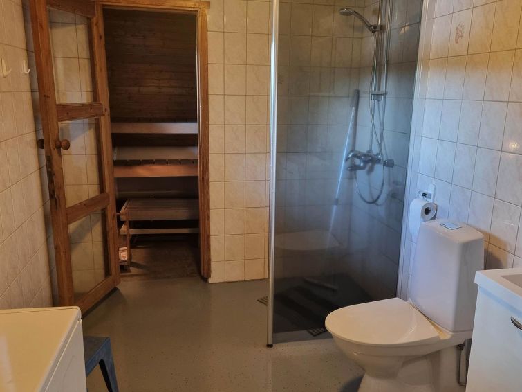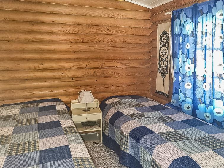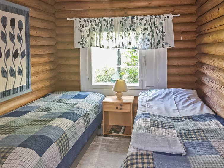 Log cottage 1984, fully renovated 2002, living room/ kitchen, bedroom 2 beds, bedroom 2 beds, washroom, sauna, open porch. Drinkingwater from a spring 1 km. Fully renovated, neat cottage for families. Maximun 2 pets allowed. Yard area level and partly grassy. Shore faces south and is suitable for children.