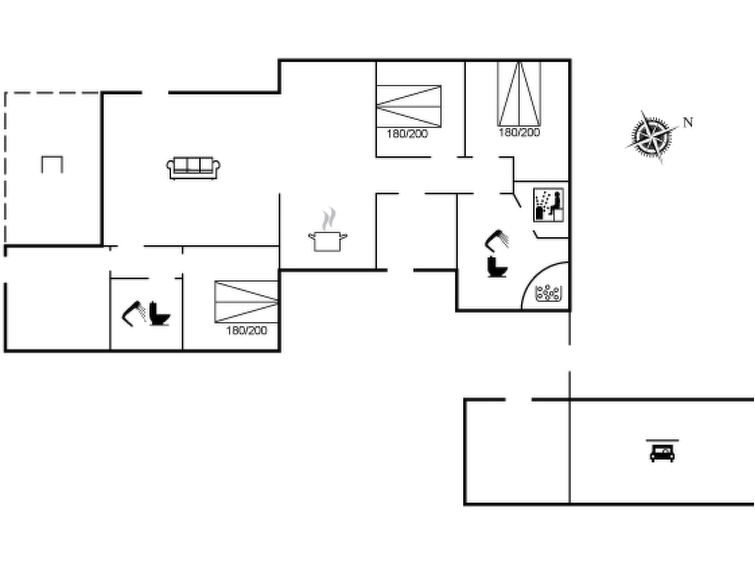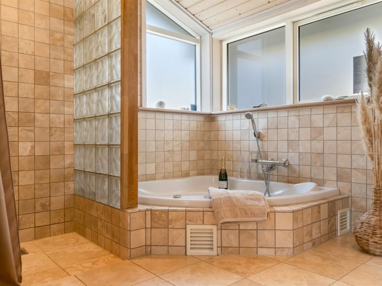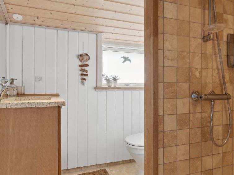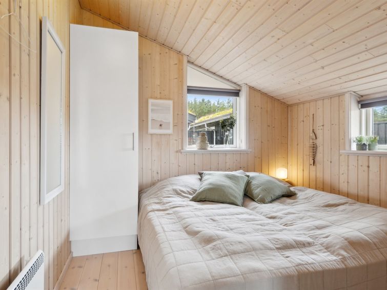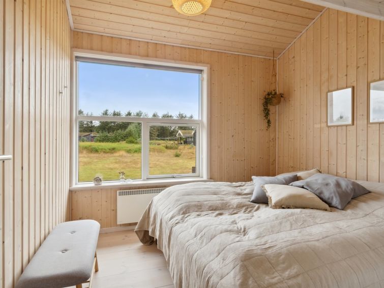 "Sazdo" - 1.1km from the sea in NW Jutland", 3 rom hus 113 m2. Passer for 6 voksne + 1 barn. Stue med, TV. 1 rom med, 1 dobbeltseng. 1 rom med, 1 dobbeltseng. Åpen galleri, 1 rom med, 1 dobbeltseng. Åpen galleri, 1 rom. Kjøkken (stekeovn, oppvaskmaskin, 4 induksjonskomfyr, mikrobølgeovn, frys). 2 dusjer/WC, boblebad. Terrasse 10 m2, dekt. Fasiliteter: høy barnestol barneseng (ekstra). Internett (trådløs LAN [WLAN]). Vennligst merk: røykfri bolig. Max kjæledyr / hund tillatt 1 kjæledyr / hund tillatt.