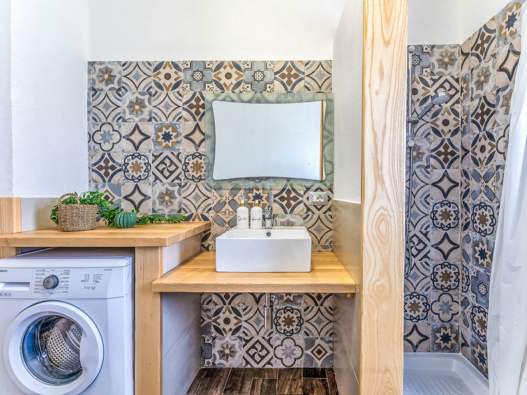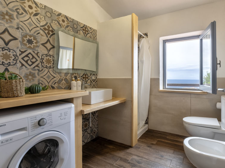 7 rom villa 150 m2 på 2 etasjer. Praktiskt og komfortabelt møbler: stue/spisestue med, 1 dobbel sovesoffa og satelit-TV. Utgang til balkongen, til verandraen. 1 dobblet rom med, dusj/bidèt/WC. 1 dobblet rom med, dusj/WC. 1 rom med 2 senger. Åpent kjøkken (4 kokeplater, stekeovn, oppvaskmaskin, frys). Dusj/bidé/WC. I underetasje: (utendørs trapp) stue/spisestue. Utgang til verandraen. 1 dobblet rom. 1 rom med 2 senger. Kjøkkenkrok (4 kokeplater, stekeovn, frys). Utgang til verandraen. Dusj/bidé/WC. Oppvarmingsalternativ. Meget vakker panoramautsikt av havet og landskapet. Fasiliteter: vaskemaskin. Internett (trådløs LAN [WLAN], gratis). Ingen innvendig dør mellom etasjene. Dersom utleieobjektet blir bestilt for færre personer enn det som er maksimalt tillatt, vil en etasje ikke stå til rådighet. IUN:Q2745