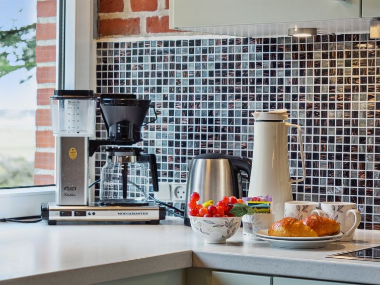 "Sedine" - 3.9km from the sea in Western Jutland", 2 rom hus 60 m2. Passer for 4 voksne. Stue med, TV, radio, CD-spiller og stereoanlegg. 1 rom med, 1 dobbeltseng. 1 rom med, 1 dobbeltseng. Kjøkken (4 kokeplater, stekeovn, oppvaskmaskin, frys). Dusj/WC. Utsikt av havet. Fasiliteter: høy barnestol. Internett (trådløs LAN [WLAN]).