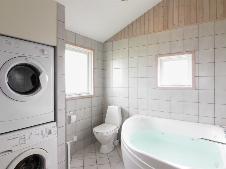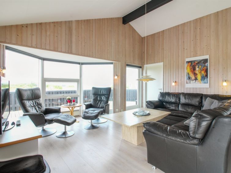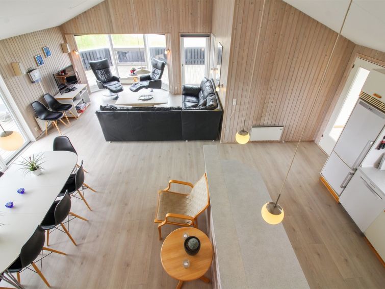 "Seniha" - 400m from the sea in NW Jutland", 4 rom hus 111 m2. Passer for 8 voksne + 1 barn. Stue med, TV, video, radio og CD-spiller. 1 rom med, 1 dobbeltseng. 1 rom med 2 senger. 1 rom med, 1 dobbeltseng. 1 rom med 2 senger. Kjøkken (4 kokeplater, stekeovn, oppvaskmaskin, mikrobølgeovn, frys). 2 dusjer/WC, boblebad. øverste etasje: åpen galleri. Utsikt av havet. Fasiliteter: høy barnestol barneseng (ekstra). Internett (trådløs LAN [WLAN]). Max kjæledyr / hund tillatt 1 kjæledyr / hund tillatt.