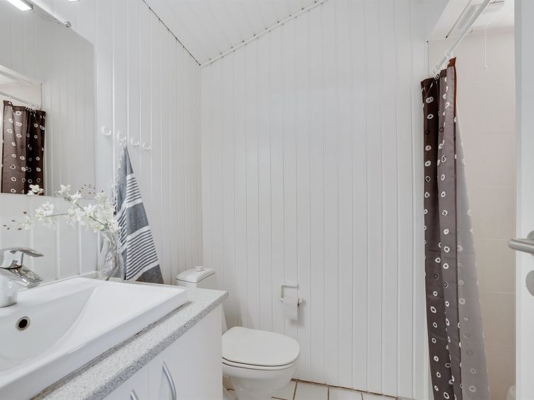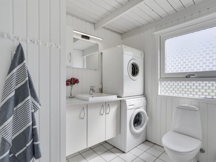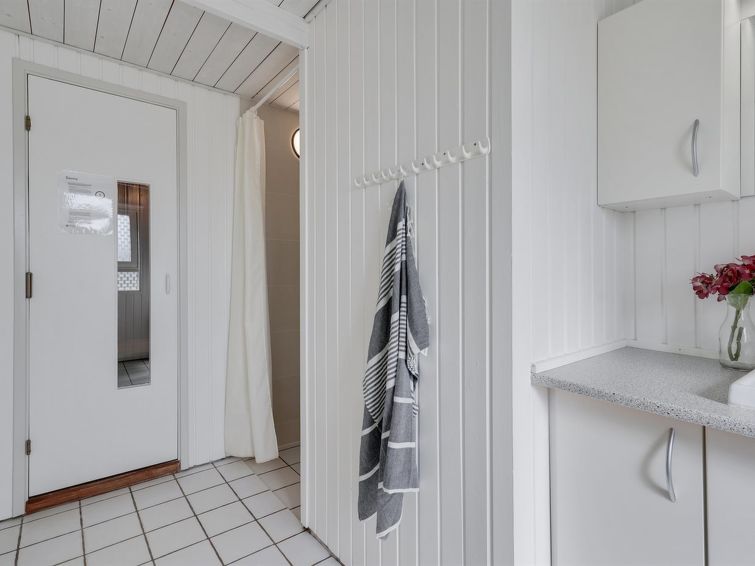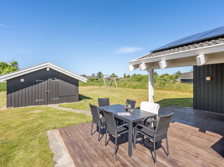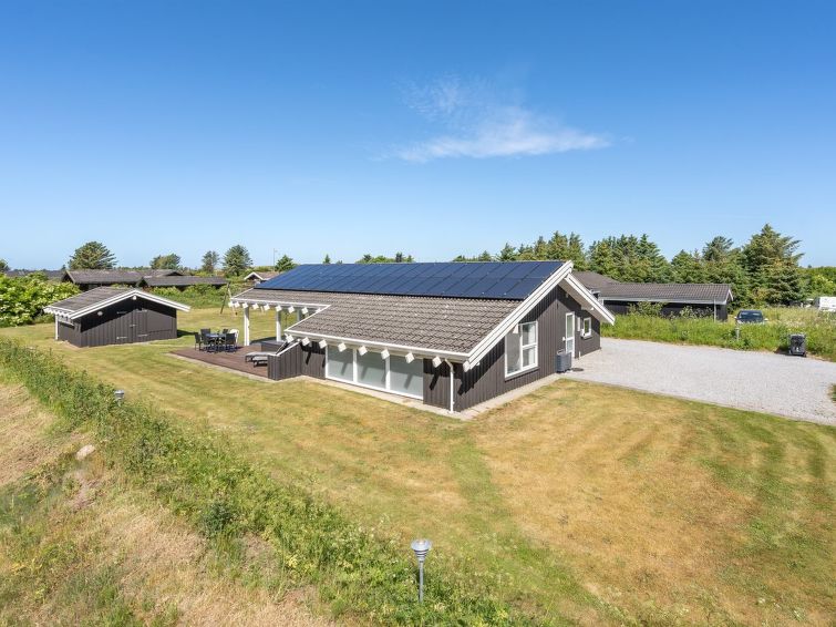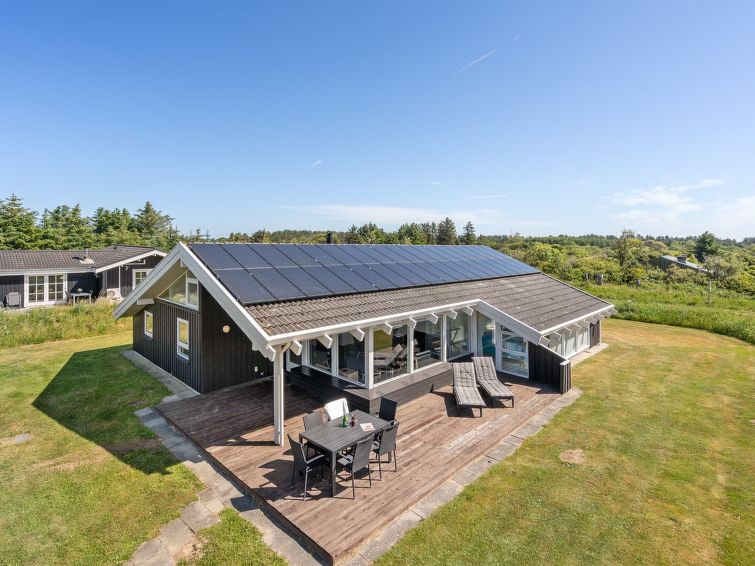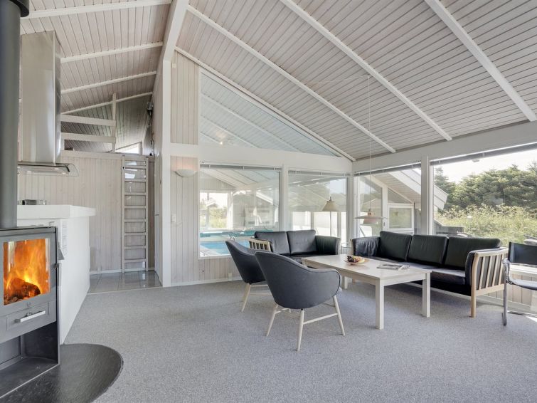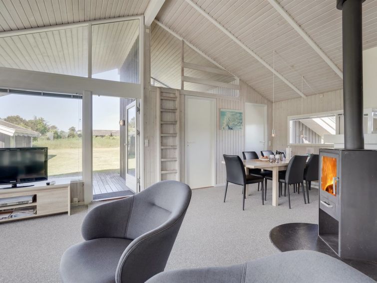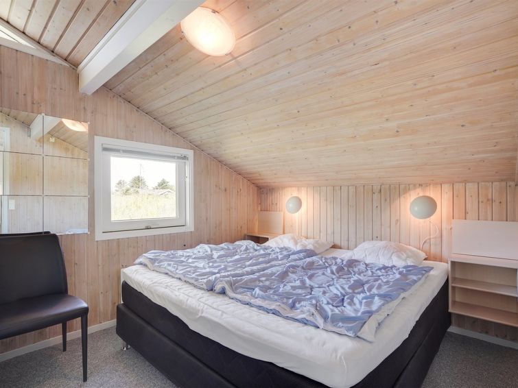 "Serine" - 800m from the sea in NW Jutland", 3 rom hus 130 m2. Passer for 8 voksne + 1 barn. Stue med, TV. 1 rom med, 1 dobbeltseng. 1 rom med, 2 x 2 køysenger. 1 rom med, 1 dobbeltseng. Kjøkken (4 kokeplater, stekeovn, oppvaskmaskin, mikrobølgeovn, frys). Dusj/WC, boblebad. øverste etasje: åpen galleri med, 2 sovemuligheter. Terrasse 10 m2, dekt. Fasiliteter: høy barnestol barneseng (ekstra). Internett (trådløs LAN [WLAN]).