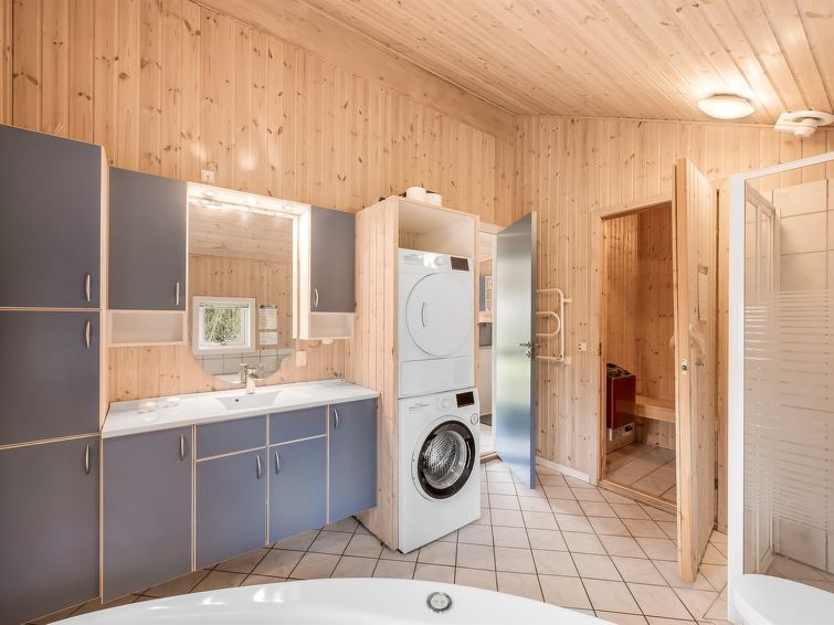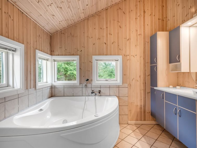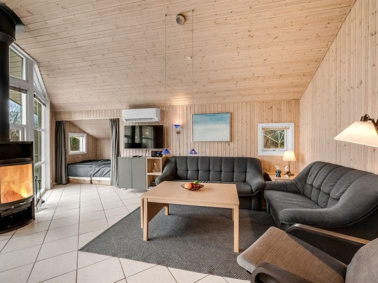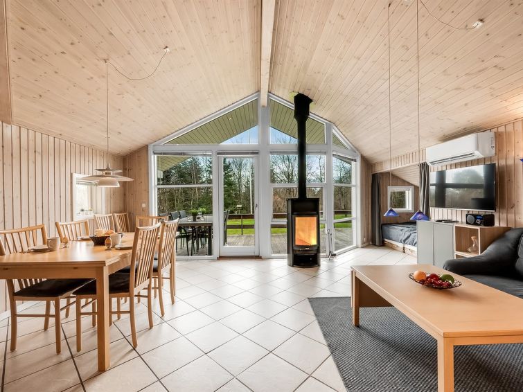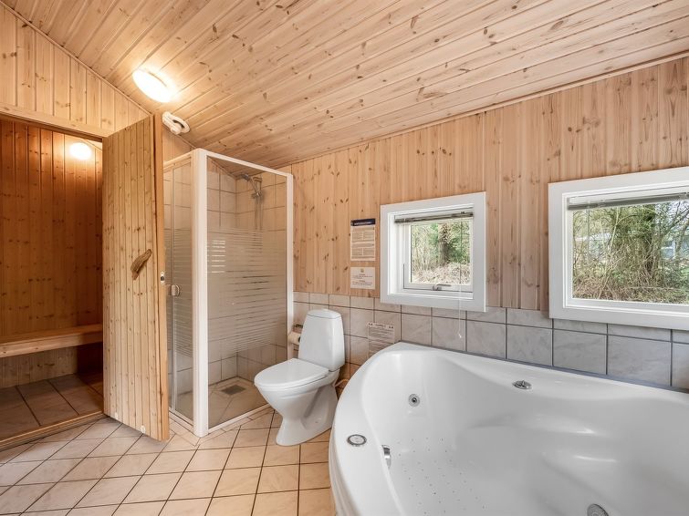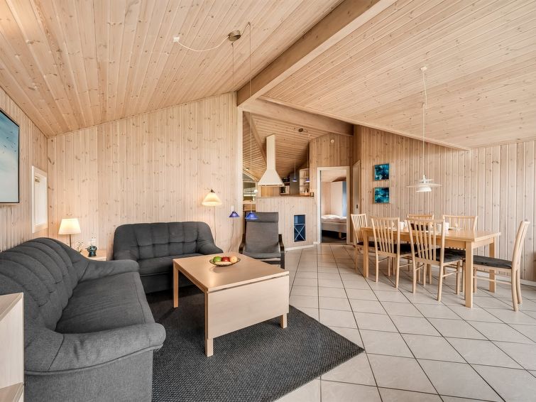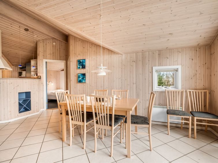 "Sesto" - 300m to the inlet in The Liim Fiord", 4 rom hus 92 m2. Passer for 8 voksne + 1 barn. Stue med, TV og radio. 1 rom med, 1 dobbeltseng. 1 rom med, 1 dobbeltseng. 1 rom med 2 senger. Kjøkken (stekeovn, oppvaskmaskin, 4 keramiske kokeplater, mikrobølgeovn, frys). Dusj/WC, boblebad. Terrasse 15 m2, dekt. Fasiliteter: høy barnestol barneseng (ekstra). Internett (trådløs LAN [WLAN]).