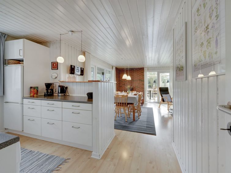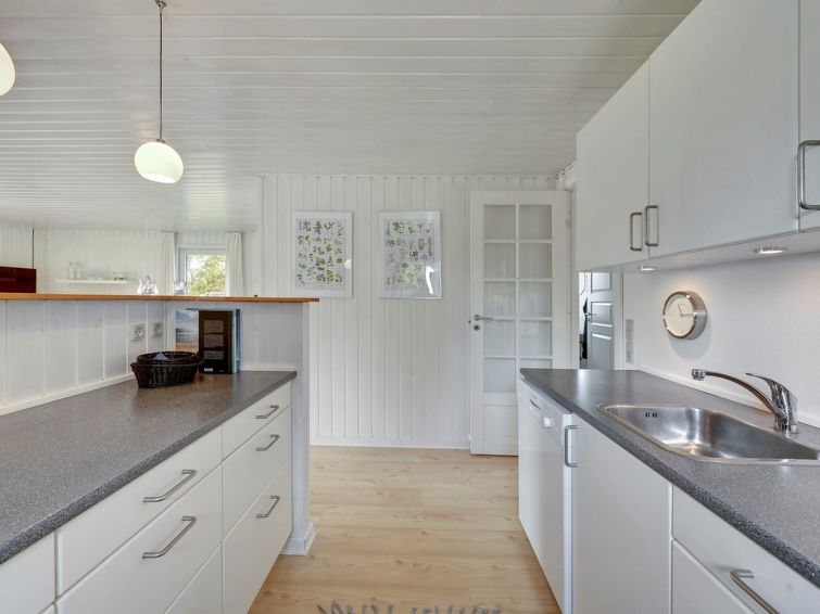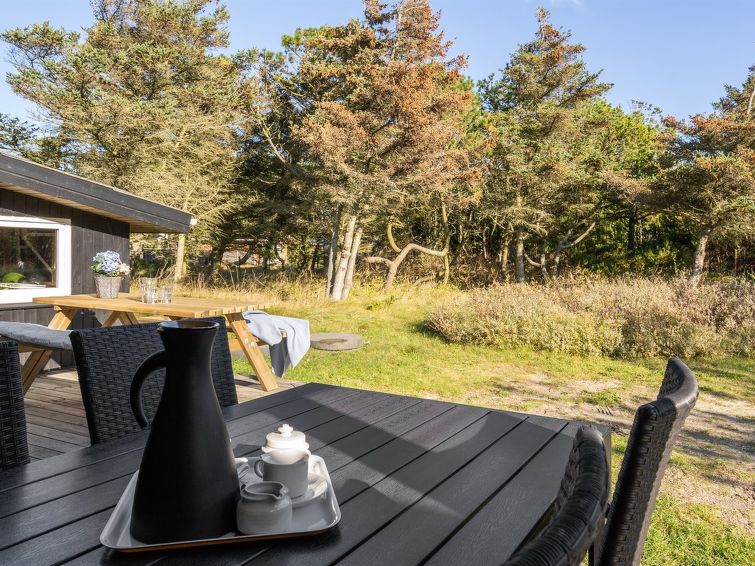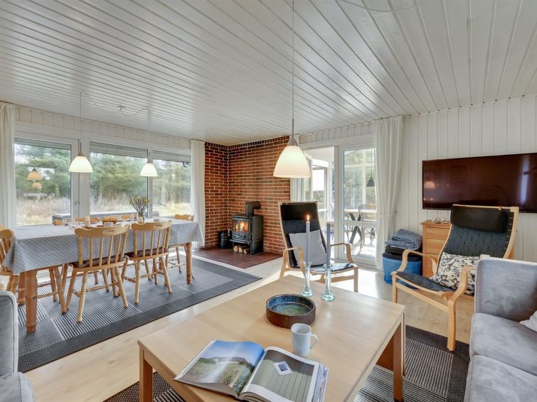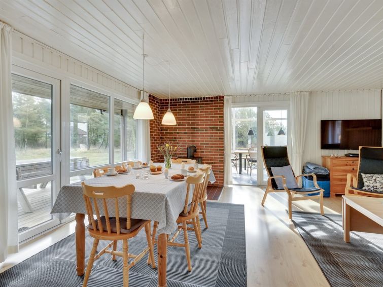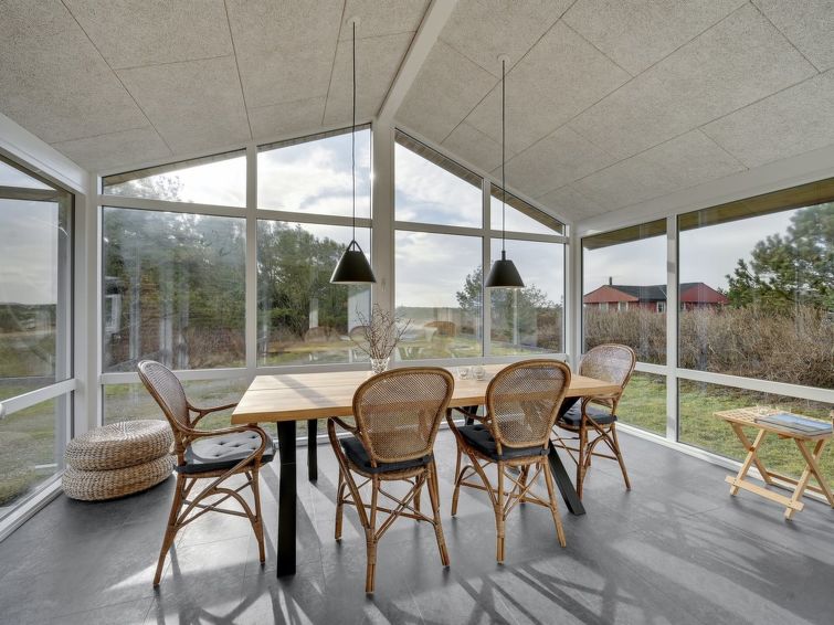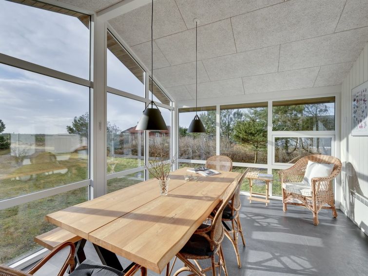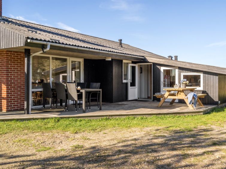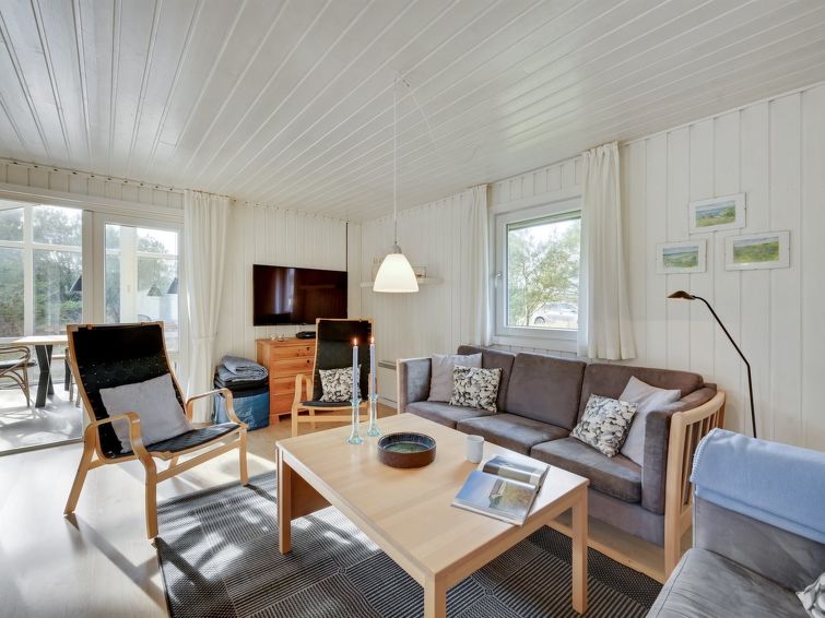 "Shalez" - from the sea in Western Jutland", 3 rom hus 100 m2. Passer for 6 voksne. Stue med, TV, radio og CD-spiller. 1 rom med 2 senger. 1 rom med, 1 x 2 køysenger. 1 rom med, 1 dobbeltseng. Kjøkken (4 kokeplater, stekeovn, oppvaskmaskin, mikrobølgeovn, frys). Dusj/WC. Terrasse 10 m2, dekt. Drivhus. Fasiliteter: Internett (trådløs LAN [WLAN]). Vennligst merk: røykfri bolig.