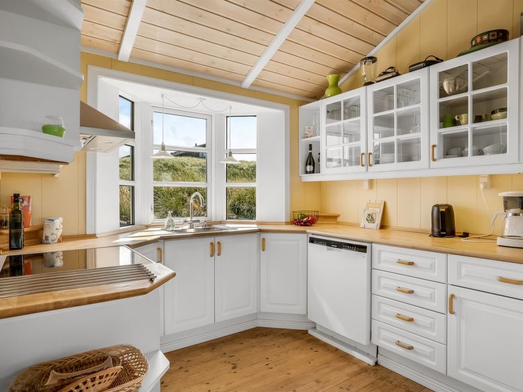 "Sheemen" - 250m from the sea in NW Jutland", 3 rom hus 109 m2. Passer for 6 voksne. Stue med, TV, CD-spiller, stereoanlegg og DVD. 1 rom med, 1 dobbeltseng. 1 rom med, 1 dobbeltseng. 1 rom med 1 seng. Kjøkken (stekeovn, oppvaskmaskin, 4 keramiske kokeplater, mikrobølgeovn, frys). Dusj/WC. øverste etasje: åpen galleri. Terrasse 5 m2, dekt. Utsikt av havet. Fasiliteter: høy barnestol. Internett (trådløs LAN [WLAN]). Max kjæledyr/små hunder tillatt 2 kjæledyr/små hunder tillatt.