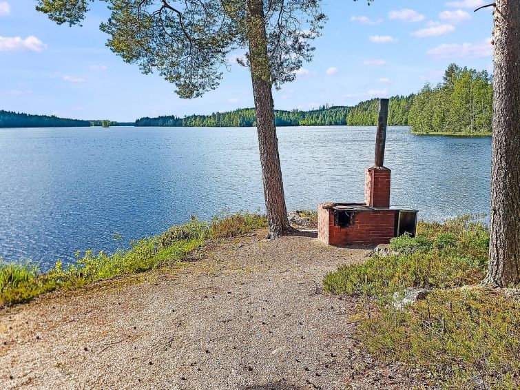 Lakeside sauna with dressing room. A large dock with table and benches, also a barbeque.