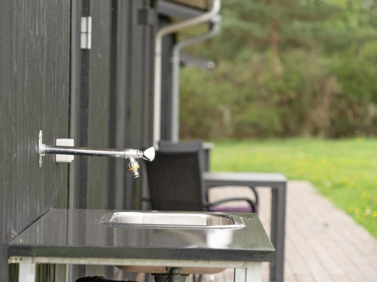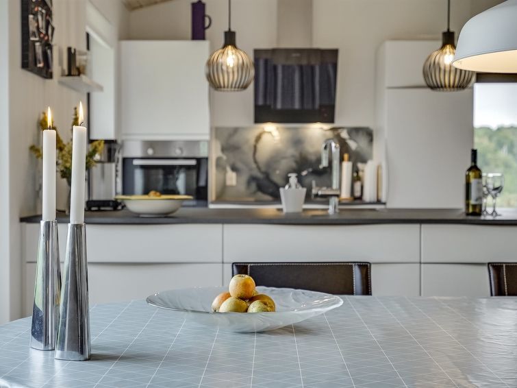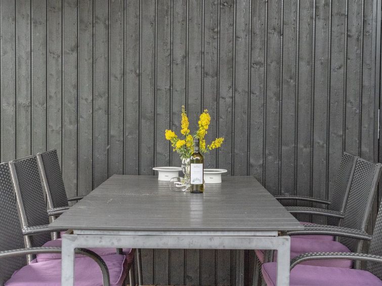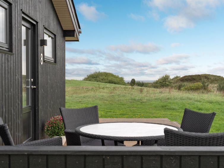 Enmannsbolig, bygget i 1978. 300 m fra sjøen. Privat: uberørt tomt 2'295 m2. Terrasse (120 m2), grill, lekeplass (rutsjebane, huske). I huset: vaskemaskin, tørketrommel. Parkering ved hbrukt. Daglivarehandel 1.5 km. Golfbane 20 km. Eieren godtar ikke noen ungdomsgrupper.