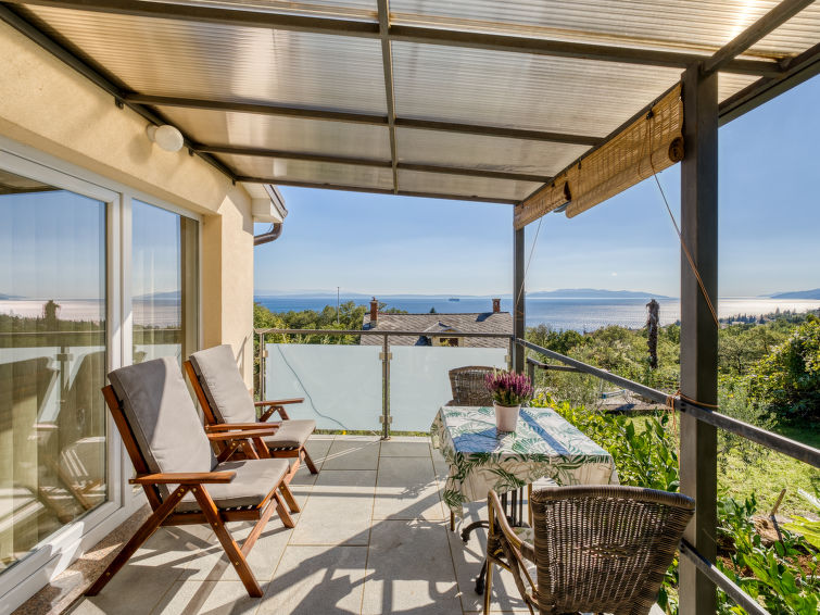 Enmannsbolig "Silvana", bygget i 2018. Ovenfor Opatija 2.5 km fra sentrum av Opatija, i en solrikt, høyt posisjon, 750 m fra sjøen, 750 m fra stranden, i en blindvei, i det grønne, beliggenhet mot sør. Fellesbruk: tomt 900 m2, hage 70 m2. I huset: internetilkobbling. Parkering ved hbrukt på tomten. Butikk 350 m, supermarked 1.7 km, restaurant 80 m, småstenstrand, betonglagt strand 750 m. Tennis 3 km. Vennligst merk: objektnummer HR3100.106 ligger på samme tomt.