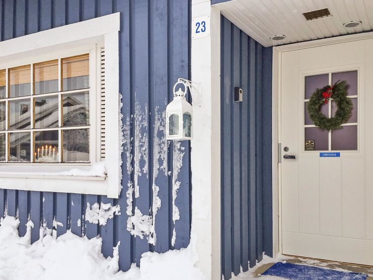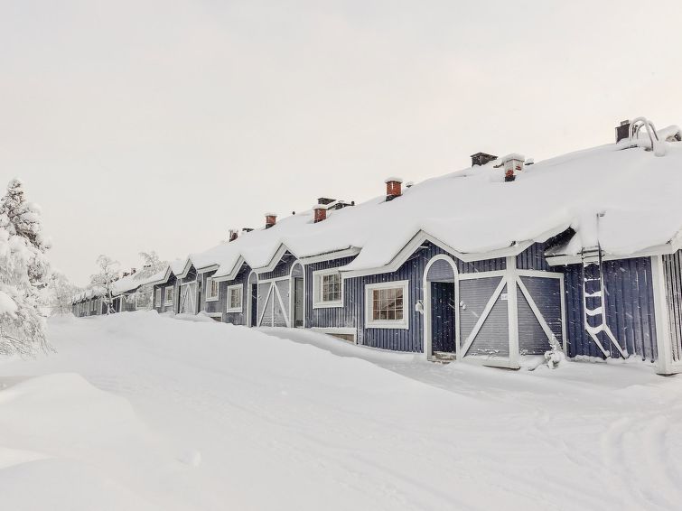 Sinitaivas is a gable apartment in a wooden row house situated in the heart of Saariselkä tourist center.
