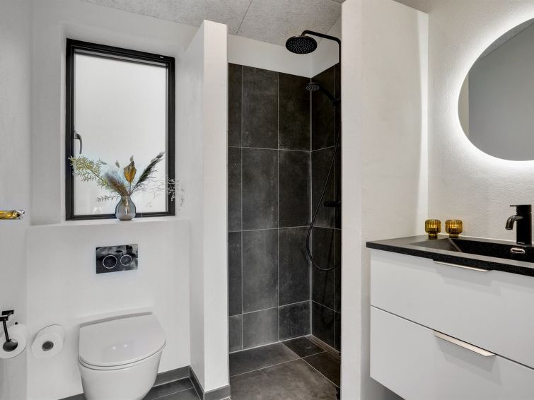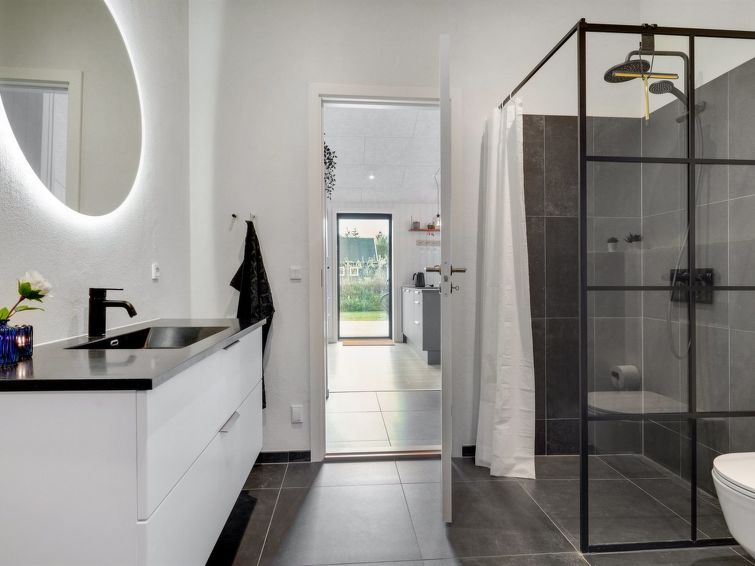 Enmannsbolig, bygget i 2022. 400 m fra sjøen. Privat: tomt 1'066 m2, velholdt hage. Grill, lekeplass (huske). I huset: vaskemaskin, tørketrommel. Parkering ved hbrukt. Daglivarehandel 1.5 km. Golfbane 4.5 km. Eieren godtar ikke noen ungdomsgrupper.