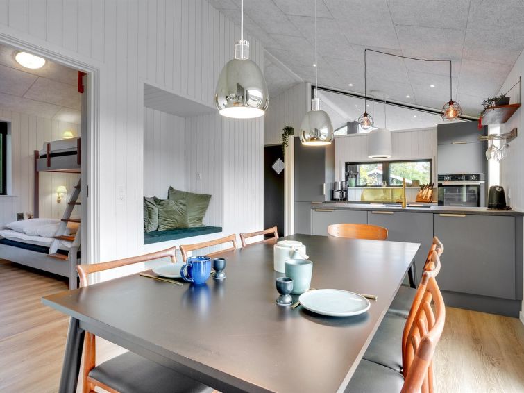 "Sinna" - from the sea in NE Jutland", 3 rom hus 107 m2. Passer for 7 voksne. Stue med, TV. 1 rom med, 1 dobbeltseng og 1 sovemulighet. 1 rom med, 1 dobbeltseng. 1 rom med, 1 dobbeltseng. Kjøkken (stekeovn, oppvaskmaskin, 4 induksjonskomfyr, mikrobølgeovn, frys). 2 dusjer/WC. Fasiliteter: høy barnestol barneseng (ekstra). Internett (trådløs LAN [WLAN]). Vennligst merk: røykfri bolig.