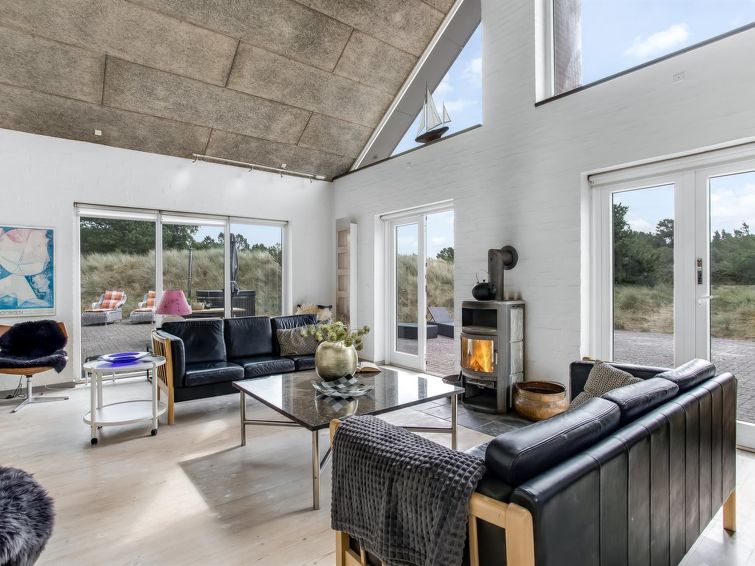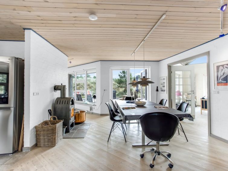 "Sjamme" - 1.2km from the sea in Western Jutland", 3 rom hus 175 m2. Passer for 6 voksne. Stue med, TV, radio, CD-spiller og DVD. 1 rom med, 1 dobbeltseng. 1 rom med, 1 dobbeltseng. 1 rom med, 2 sovesoffaer. Kjøkken (stekeovn, oppvaskmaskin, 4 keramiske kokeplater, mikrobølgeovn, frys). 2 dusjer/WC. Terrasse 10 m2, dekt. Fasiliteter: høy barnestol barneseng (ekstra). Internett (trådløs LAN [WLAN]). Vennligst merk: røykfri bolig. Max kjæledyr/små hunder tillatt 2 kjæledyr/små hunder tillatt.