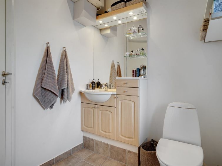 Enmannsbolig, bygget i 2003. 100 m fra sjøen. Privat: tomt 396 m2, velholdt hage. Terrasse (50 m2). I huset: trikkpolinje, vaskemaskin. Parkering ved hbrukt. Daglivarehandel 2 km. Eieren godtar ikke noen ungdomsgrupper.