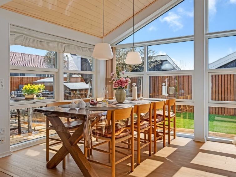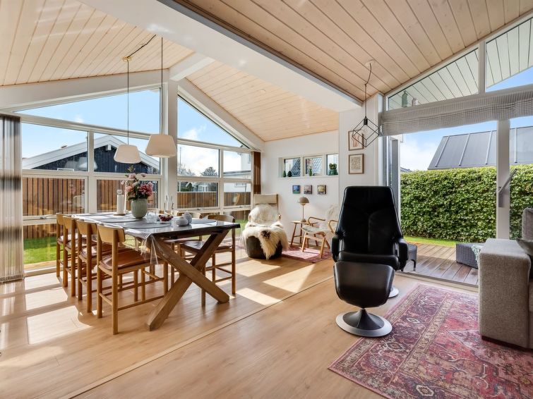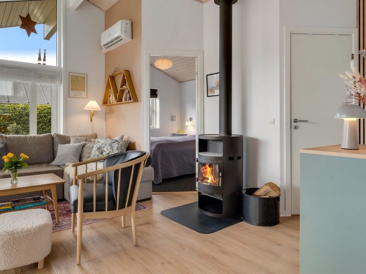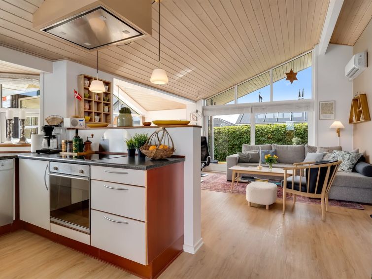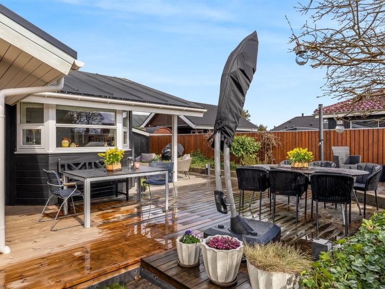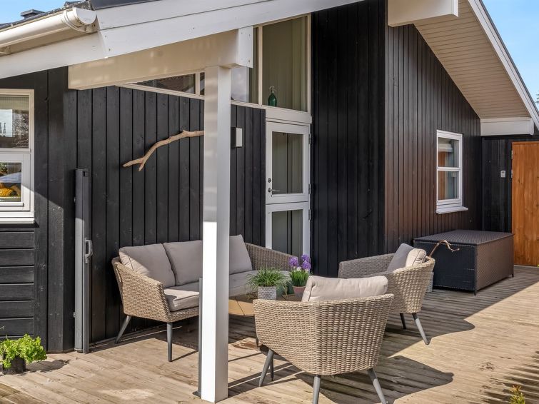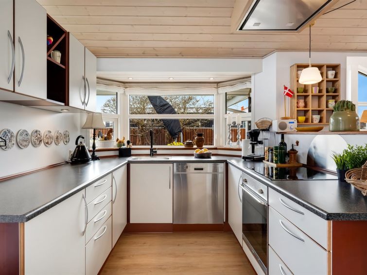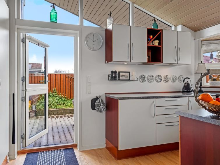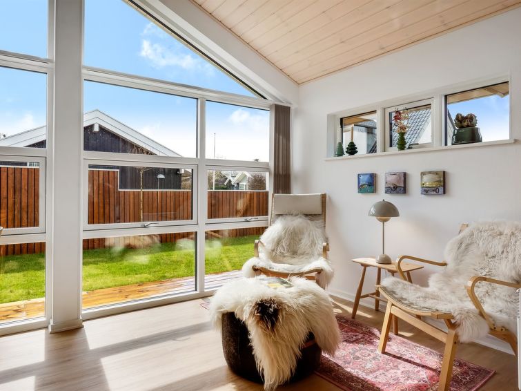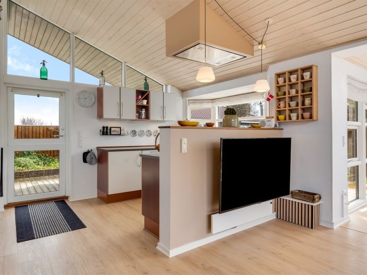 "Sjarlotte" - 100m from the sea in SE Jutland", 2 rom hus 58 m2. Passer for 4 voksne + 1 barn. Stue med, TV og radio. 1 rom med, 1 dobbeltseng. 1 rom med, 1 dobbeltseng. Kjøkken (stekeovn, oppvaskmaskin, 4 keramiske kokeplater, mikrobølgeovn, frys). Dusj/WC. Terrasse 20 m2, dekt. Utsikt av havet. Fasiliteter: høy barnestol barneseng (ekstra). Internett (trådløs LAN [WLAN]). Vennligst merk: røykfri bolig.