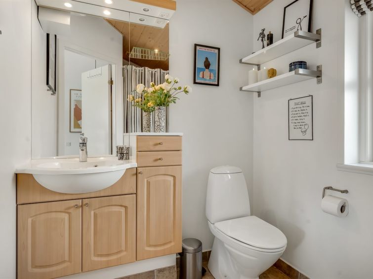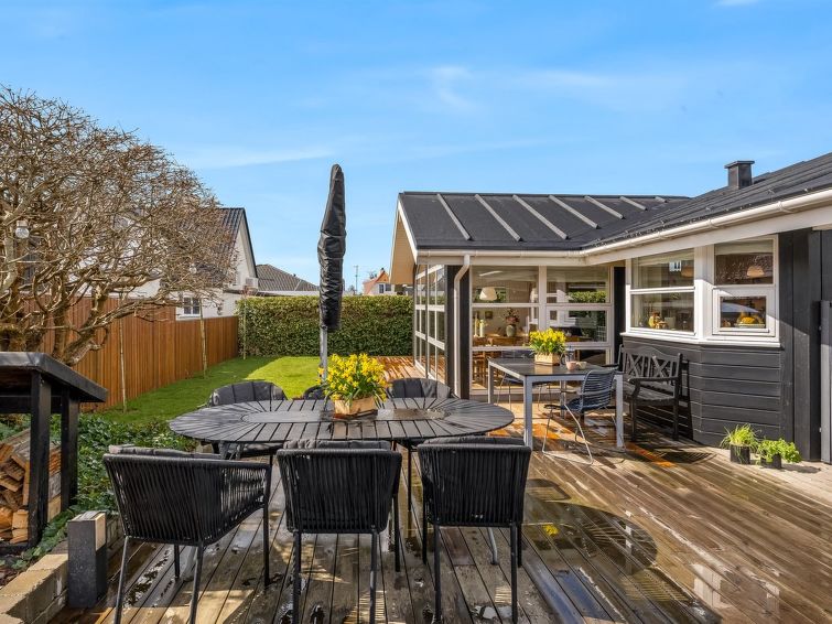 Enmannsbolig, bygget i 2003. 100 m fra sjøen. Privat: tomt 396 m2, velholdt hage. Terrasse (50 m2). I huset: trikkpolinje, vaskemaskin. Parkering ved hbrukt. Daglivarehandel 2 km. Eieren godtar ikke noen ungdomsgrupper.