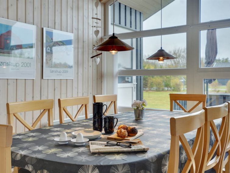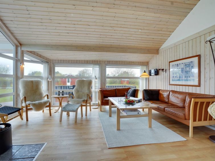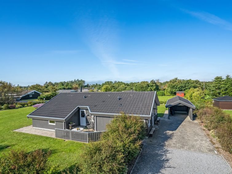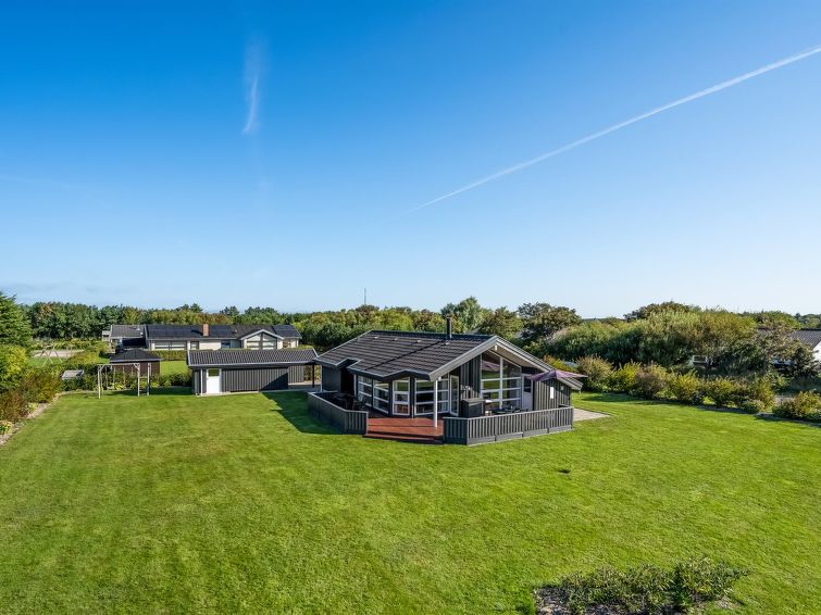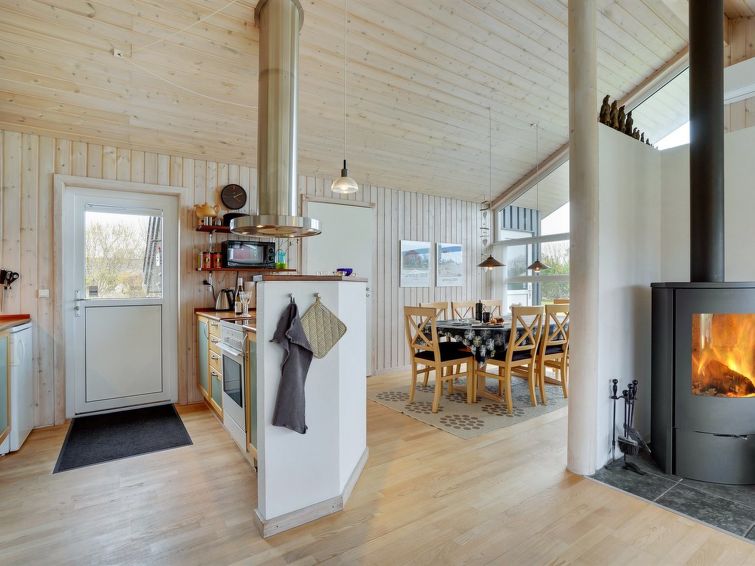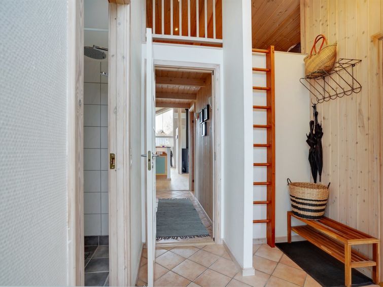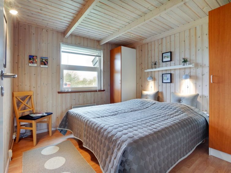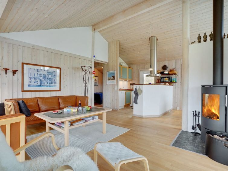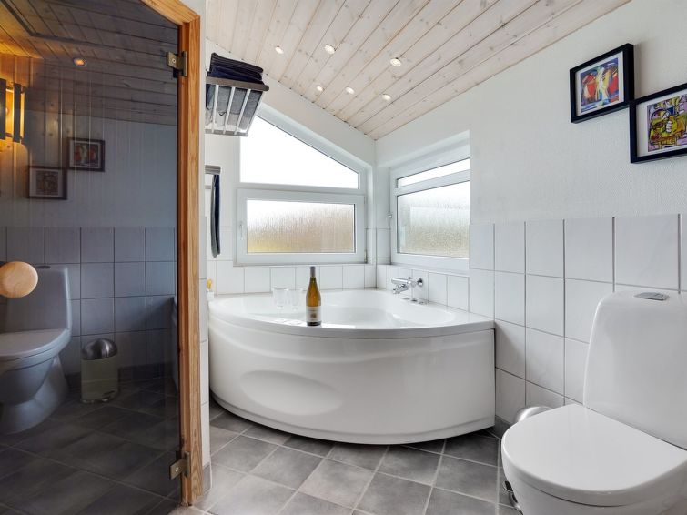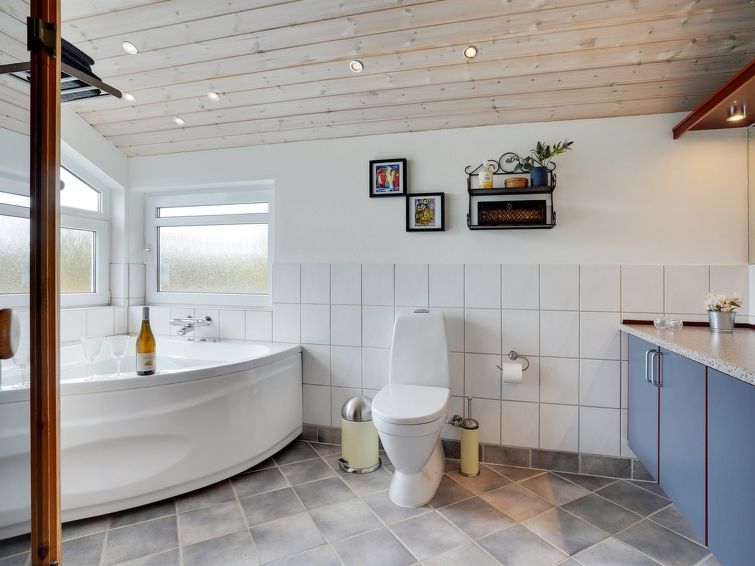 "Sjo" - 800m from the sea in NW Jutland", 4 rom hus 103 m2. Passer for 8 voksne + 1 barn. Stue med, TV, radio, stereoanlegg og DVD. 1 rom med, 1 dobbeltseng. 1 rom med, 1 dobbeltseng. 1 rom med 2 senger. Åpen galleri, 1 rom med 2 senger. Kjøkken (stekeovn, oppvaskmaskin, 4 keramiske kokeplater, mikrobølgeovn, frys). 2 dusjer/WC, boblebad. Terrasse 5 m2, dekt. Fasiliteter: høy barnestol barneseng (ekstra). Internett (trådløs LAN [WLAN]). Vennligst merk: røykfri bolig.