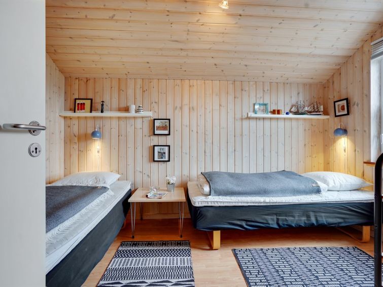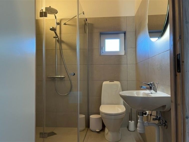 Enmannsbolig, bygget i 2001. 800 m fra sjøen. Privat: uberørt tomt 1'500 m2. Terrasse (40 m2), grill, lekeplass (huske). I huset: badstu, vaskemaskin, tørketrommel. Parkering ved hbrukt. Bilporten. Daglivarehandel 900 m. Eieren godtar ikke noen ungdomsgrupper.