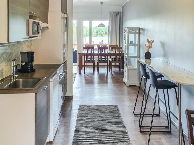 Apartment located in the Ukkohalla tourism centre, 2 + 2 persons, 47 m², built in 2013, kitchen, bedrooms, sauna, shower room/toilet. Bedroom two beds and a sofa-bed in living room. Ukkohalla: Tourism centre located by Lake Syväjärvi, with an information centre, store, restaurant, spa, slope centre, snowmobile tracks, ski tracks, programme services, Cable Wakeboard, beach (further information at www.ukkohalla.fi). Distance to the Ukkohalla services 0.1 km. Kajaani airport 86 km, Oulu 170 km, Helsinki 650 km, bus stop Hyrynsalmi 18 km, railway station Kontiomäki 66 km.