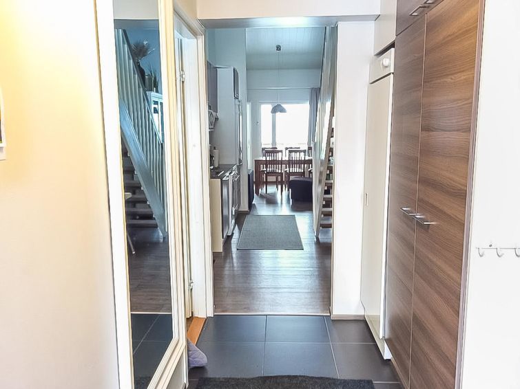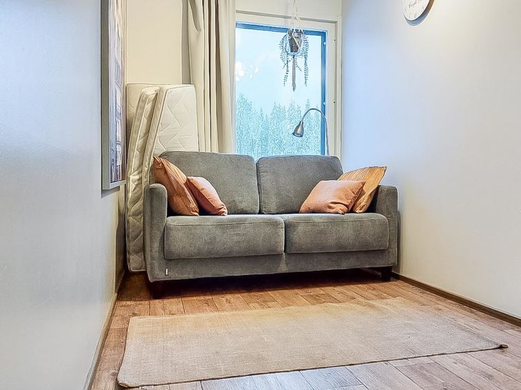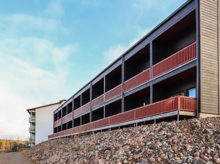 Apartment located in the Ukkohalla tourism centre, 4 + 4 persons, 61 m², built in 2013, living room, kitchen, two bedrooms, loft, sauna, shower room/toilet. Bedrooms two beds/room, a sofa-bed in living room and sofa-bed on the loft. Ukkohalla: Tourism centre located by Lake Syväjärvi, with an information centre, store, restaurant, spa, slope centre, snowmobile tracks, ski tracks, programme services, Cable Wakeboard, beach (further information at www.ukkohalla.fi). Distance to the Ukkohalla services 0.1 km. Kajaani airport 86 km, Oulu 170 km, Helsinki 650 km, bus stop Hyrynsalmi 18 km, railway station Kontiomäki 66 km.