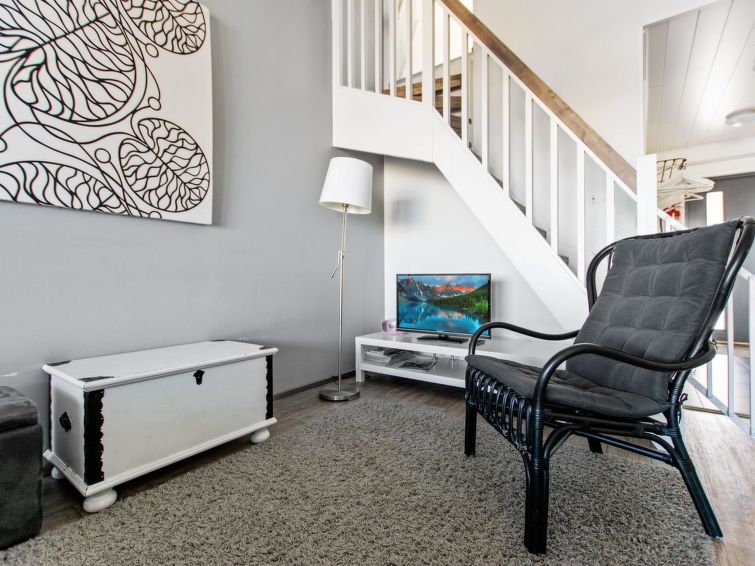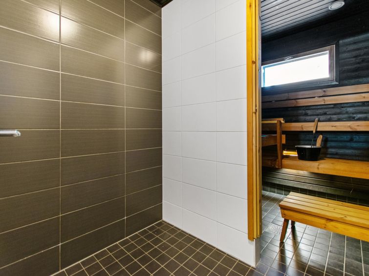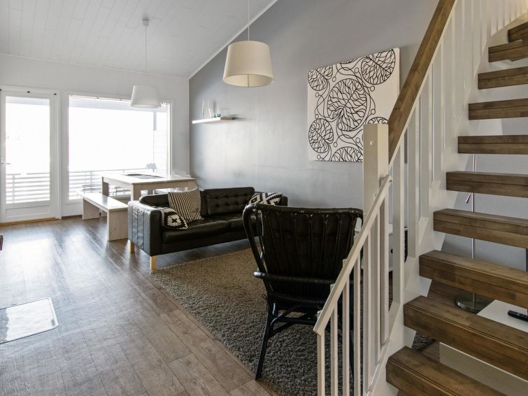 Apartment located in the Ukkohalla tourism centre, 6 + 2 persons, 78 m², built in 2013, kitchen, 2 bedrooms, loft, sauna, shower room, toilet, fire place. 1. bedroom double bed, 2. bedroom bed for two and loft bed for 4 person.