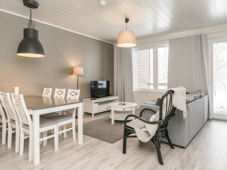 Apartment located in the Paljakka tourism centre, 6 + 2 persons, 69 m², built in 2015, living room, kitchen, 3 bedrooms, loft, sauna, shower room and toilet. Bedrooms two beds/room, a sofa-bed in living room.