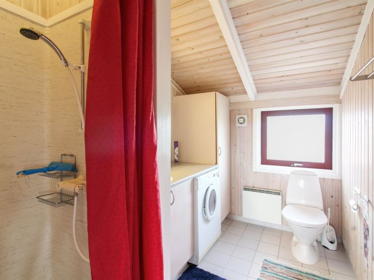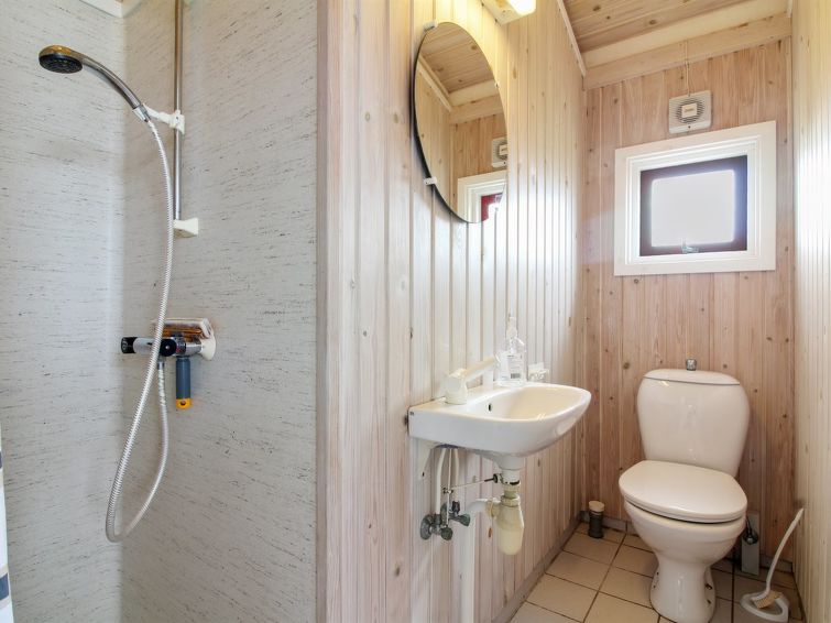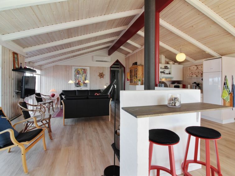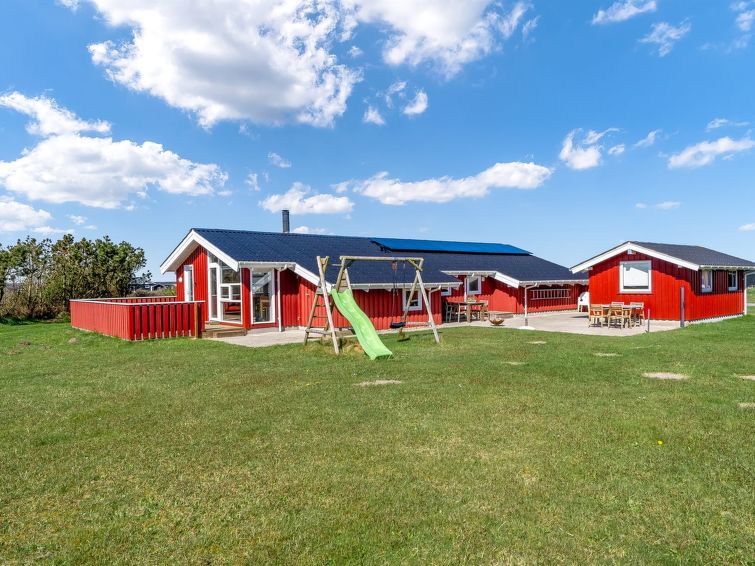 "Skrallan" - 400m from the sea in NW Jutland", 4 rom hus 128 m2. Passer for 9 voksne + 1 barn. Stue med, TV, radio, CD-spiller og DVD. 1 rom med, 1 dobbeltseng. 1 rom med, 1 dobbeltseng. Åpen galleri, Studio 1 rom med med, 1 sovesoffa, 1 dobbel sovesoffa og 1 x 2 køysenger. Kjøkken (stekeovn, oppvaskmaskin, 4 induksjonskomfyr, mikrobølgeovn, frys). 2 dusjer/WC, boblebad. Fasiliteter: høy barnestol barneseng (ekstra). Internett (trådløs LAN [WLAN]). Vennligst merk: røykfri bolig.