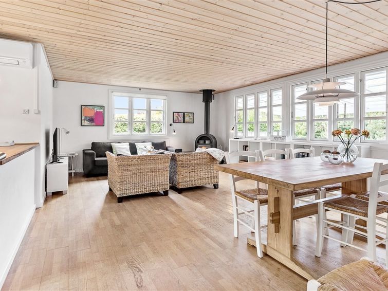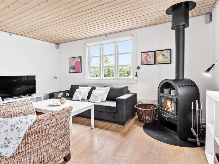 "Skrolan" - 200m from the sea in Lolland, Falster and Mon", 3 rom hus 92 m2. Passer for 6 voksne + 1 barn. Stue med, TV, CD-spiller, stereoanlegg og DVD. 1 rom med, 1 dobbeltseng. 1 rom med, 1 dobbeltseng. 1 rom med, 1 dobbeltseng. Kjøkken (stekeovn, oppvaskmaskin, 4 keramiske kokeplater, mikrobølgeovn, frys). Dusj/WC, boblebad. Terrasse 30 m2, dekt. Fasiliteter: Internett (trådløs LAN [WLAN]). Vennligst merk: røykfri bolig. Max kjæledyr/små hunder tillatt 2 kjæledyr/små hunder tillatt.