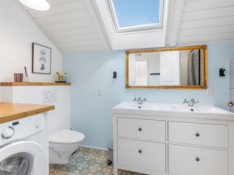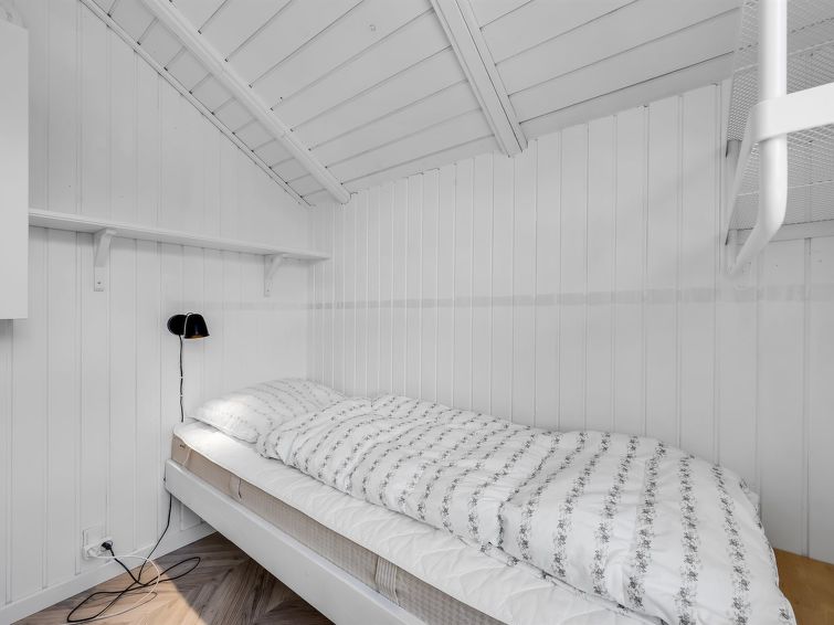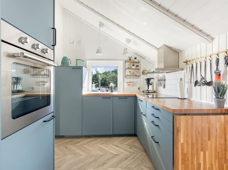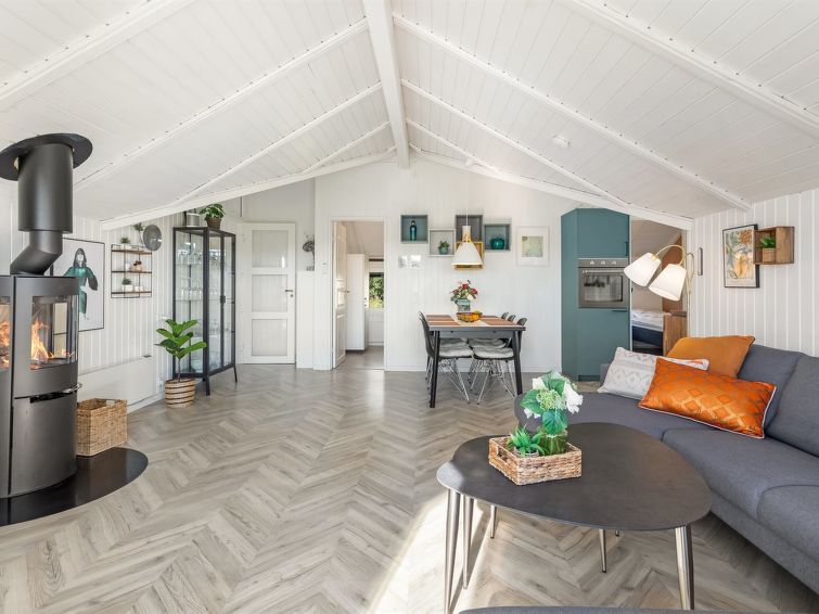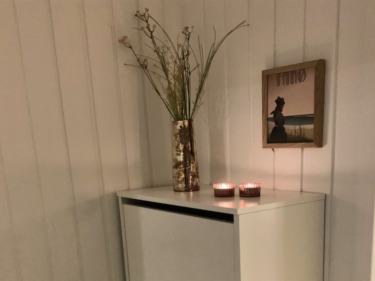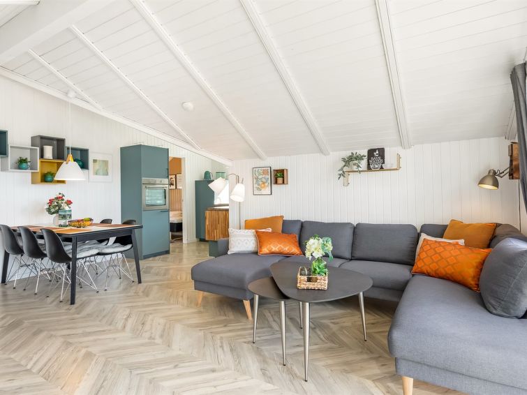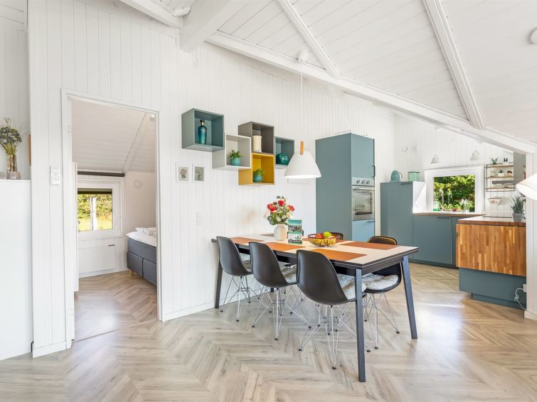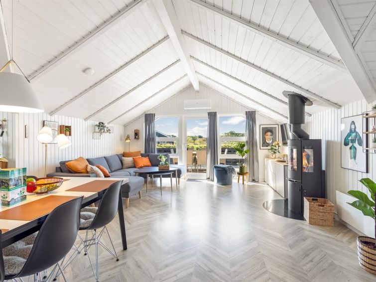 "Skyler" - 1km from the sea in Western Jutland", 4 rom hus 75 m2. Passer for 4 voksne + 3 barn. Stue med, TV. 1 rom med, 1 dobbeltseng. 1 rom med, 1 x 2 køysenger. Studio 1 rom med med, 1 dobbeltseng. Kjøkken (stekeovn, oppvaskmaskin, 4 induksjonskomfyr, frys). Dusj/WC. Terrasse 20 m2, dekt. Fasiliteter: høy barnestol barneseng (ekstra). Internett (trådløs LAN [WLAN]). Vennligst merk: røykfri bolig.