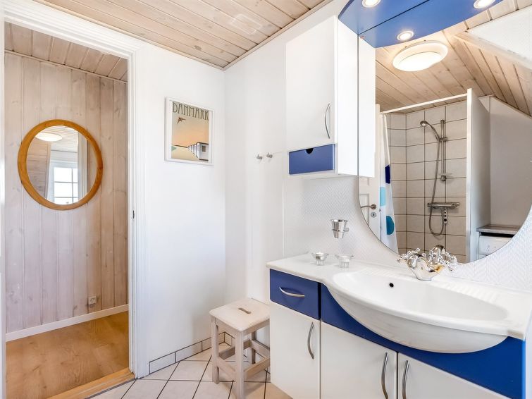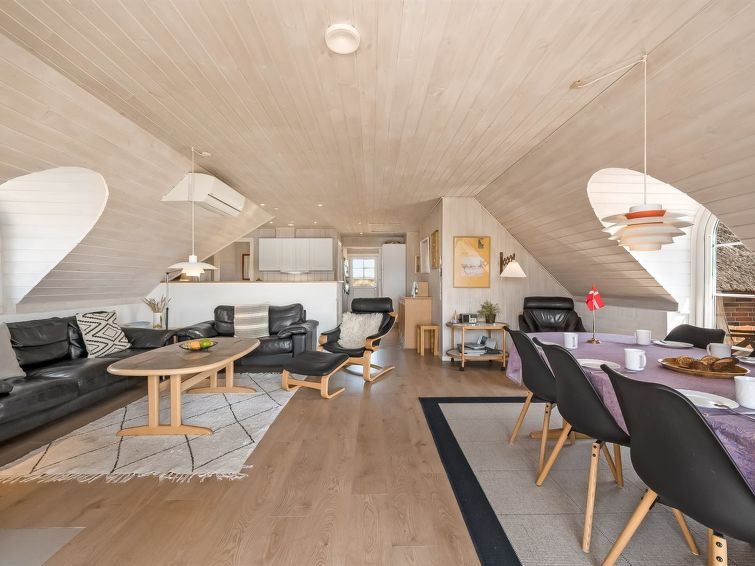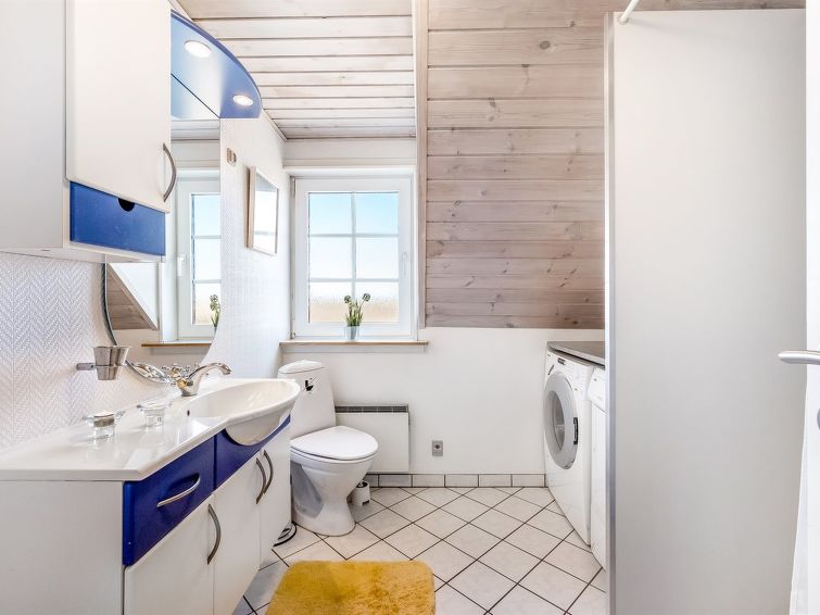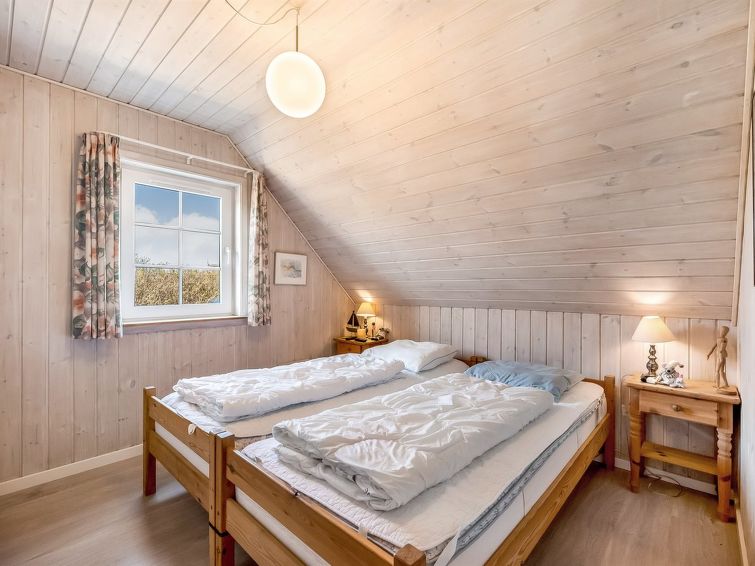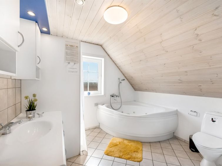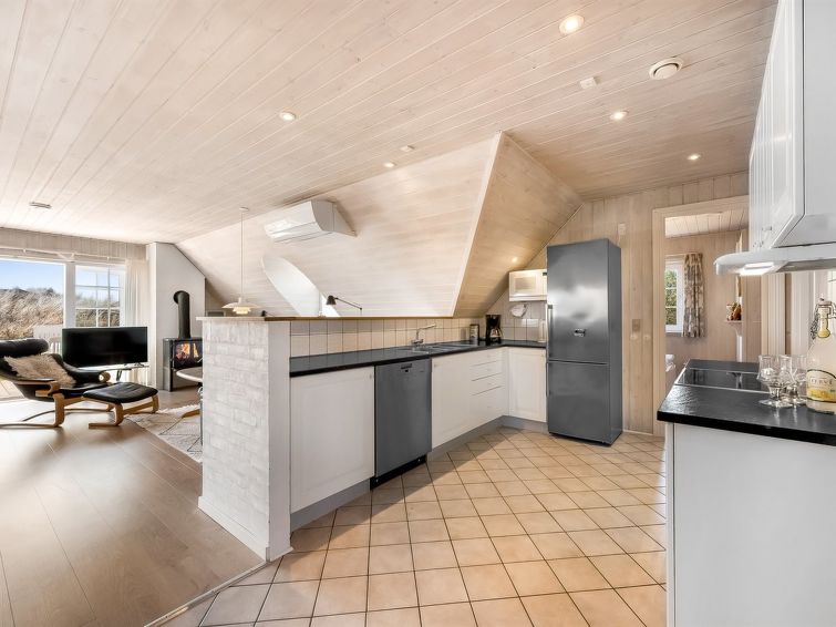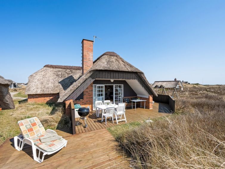 "Slava" - 250m from the sea in Western Jutland", 4 rom hus 120 m2. Passer for 6 voksne + 2 barn. Stue med, TV, radio, CD-spiller, stereoanlegg og DVD. 1 rom med, 1 dobbeltseng. 1 rom med 2 senger. 1 rom med, 1 dobbeltseng. 1 rom med, 1 dobbeltseng. Kjøkken (stekeovn, oppvaskmaskin, 4 keramiske kokeplater, mikrobølgeovn, frys). Dusj/WC, boblebad. Terrasse 10 m2, dekt. Fasiliteter: høy barnestol. Internett (trådløs LAN [WLAN]). Vennligst merk: røykfri bolig.