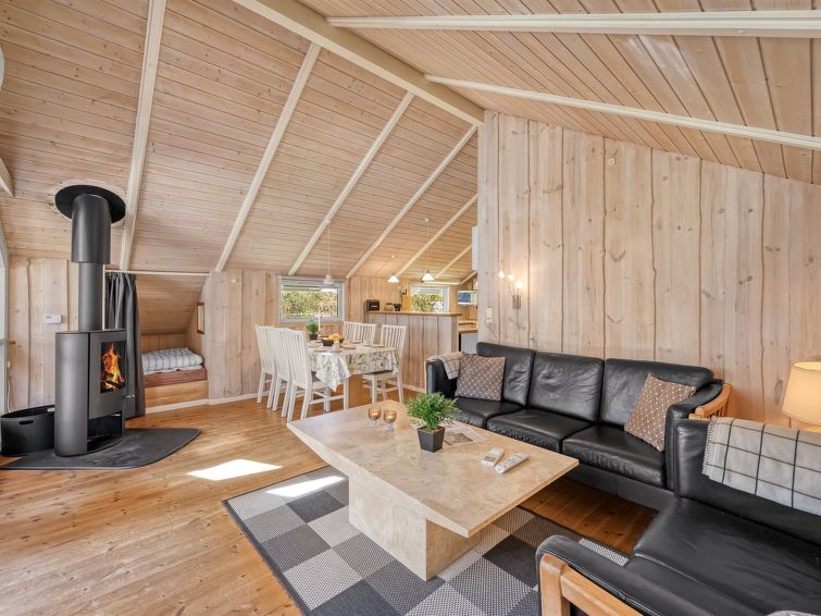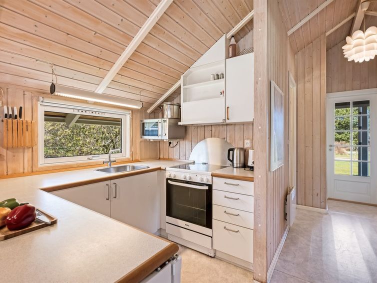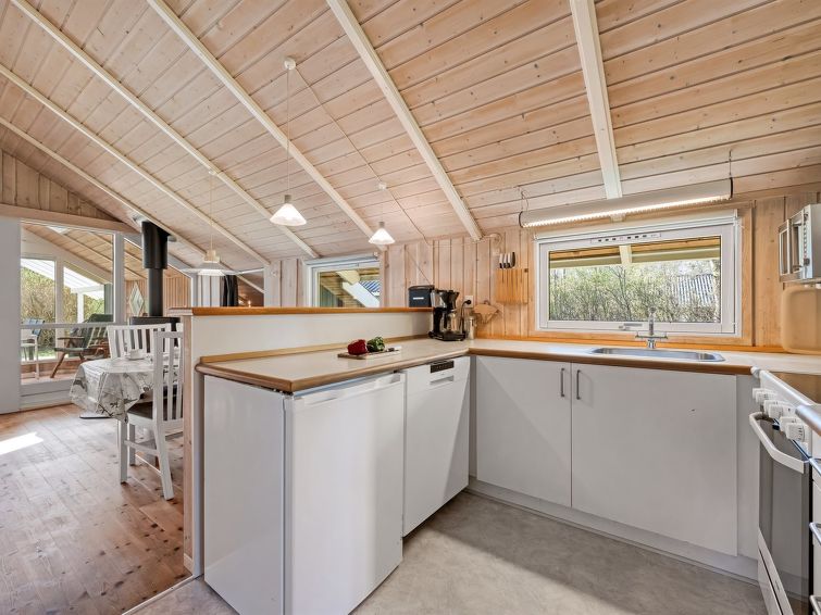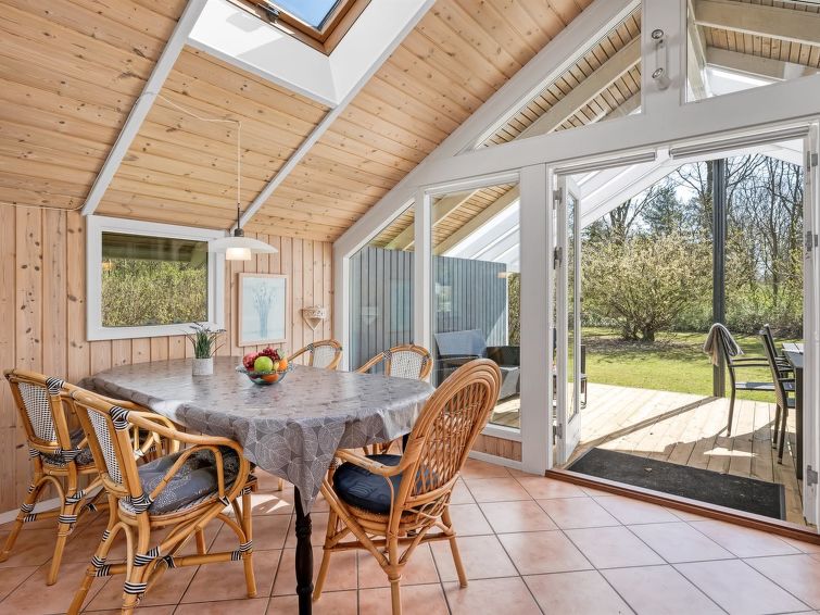 "Snefrid" - 12km from the sea in Western Jutland", 4 rom hus 76 m2. Passer for 6 voksne + 1 barn. Stue med, 1 dobbeltseng og TV. 1 rom med, 1 dobbeltseng. Studio 1 rom med med 2 senger og 1 x 2 køysenger. Kjøkken (4 kokeplater, stekeovn, oppvaskmaskin, mikrobølgeovn, frys). Dusj/WC. Terrasse 6 m2, dekt. Drivhus. Fasiliteter: høy barnestol barneseng (ekstra). Internett (trådløs LAN [WLAN]). Vennligst merk: røykfri bolig. Max kjæledyr / hund tillatt 1 kjæledyr / hund tillatt.