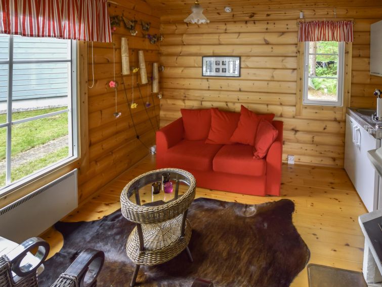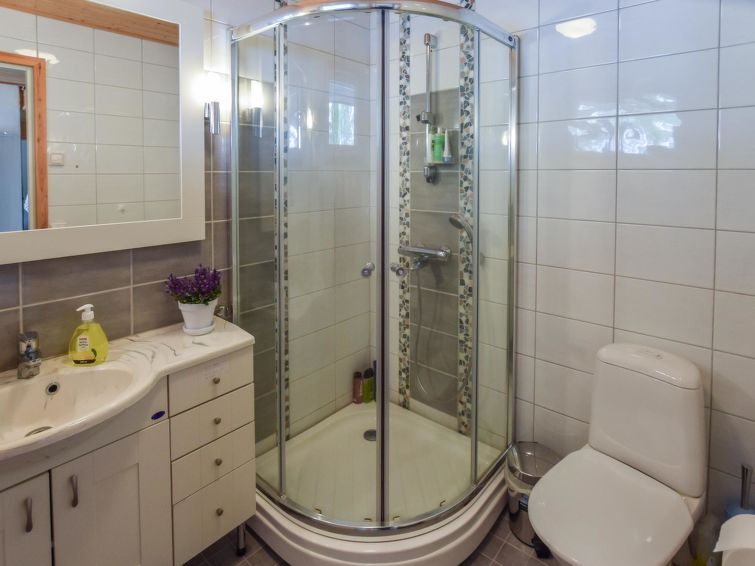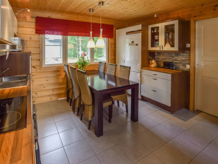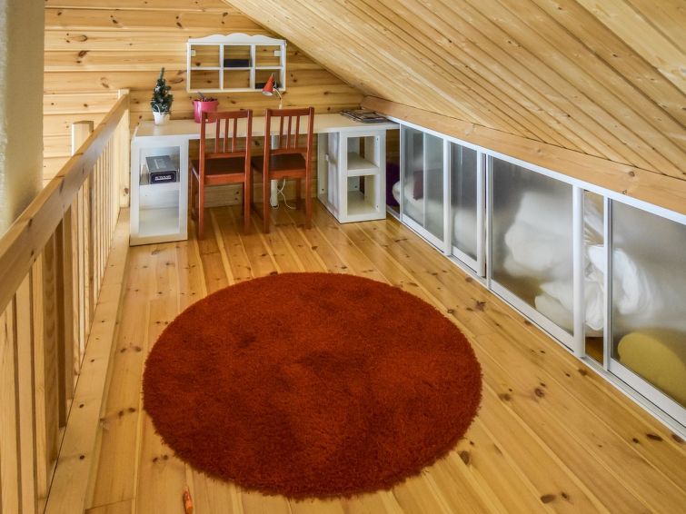 Log house 2007, kitchen, living room, bedroom with double bed (own entrance), second bedroom with double bed, in the loft spread bed and two mattresses. Washroom with shower and toilet, utility room.