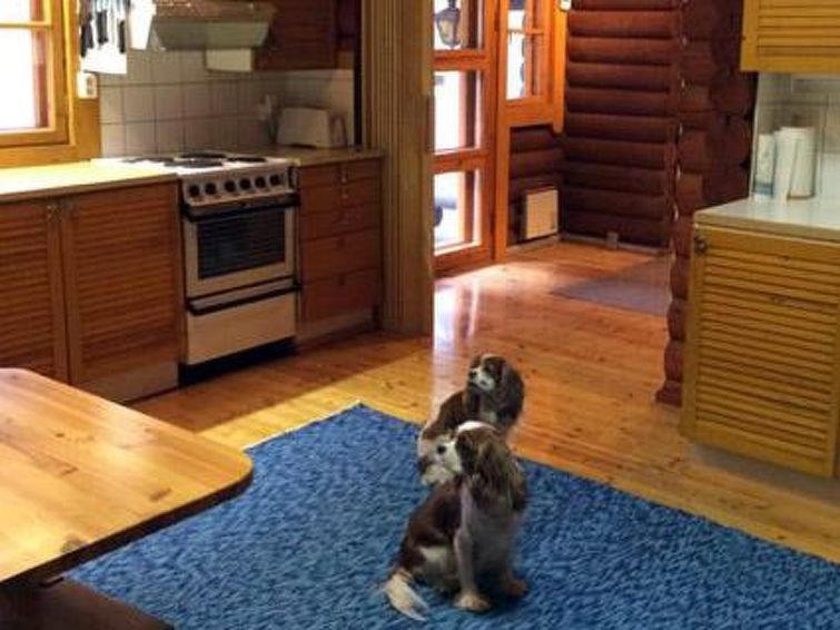 Round log cottage 1979, kitchen, living/dining room, bedroom with 2 beds, bedroom with a double bed, dressing room, bathroom, 2 showers, sauna, open terrace.