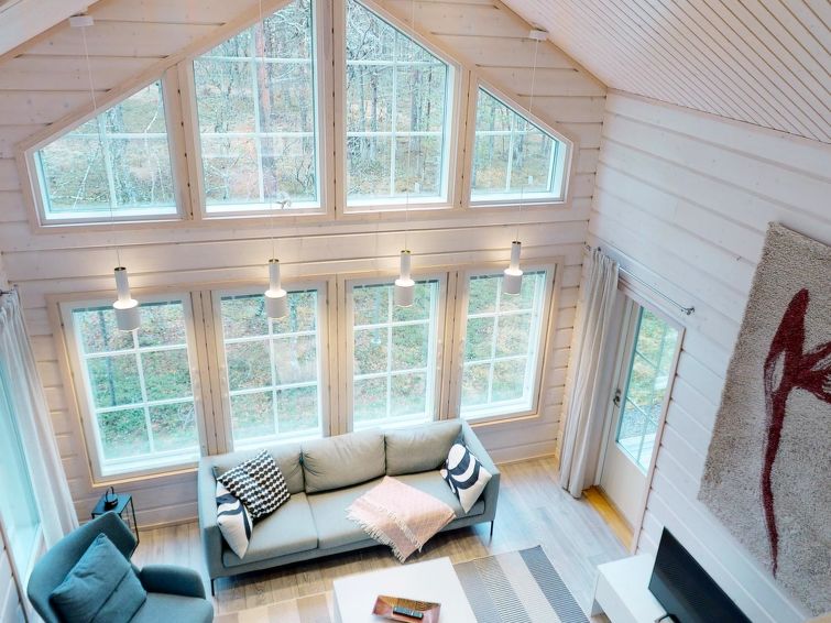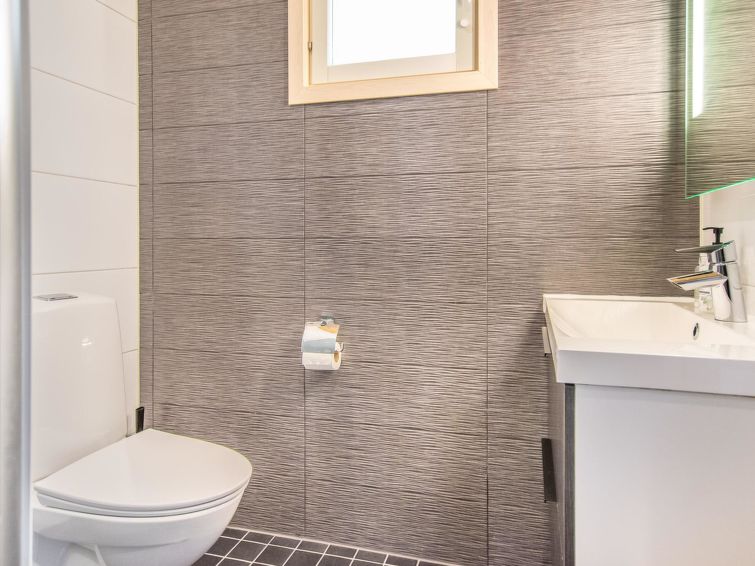 The cottage has a living room with an open kitchen, 2 bedrooms, loft-like upper floor, washroom/toilet, sauna, toilet and terrace. Apartment area 109.5 m², of which 86 m² on the ground floor and 23.5 m² on the loft. In addition, a carport and a ski maintenance room with a ski lubrication rack and an iron.