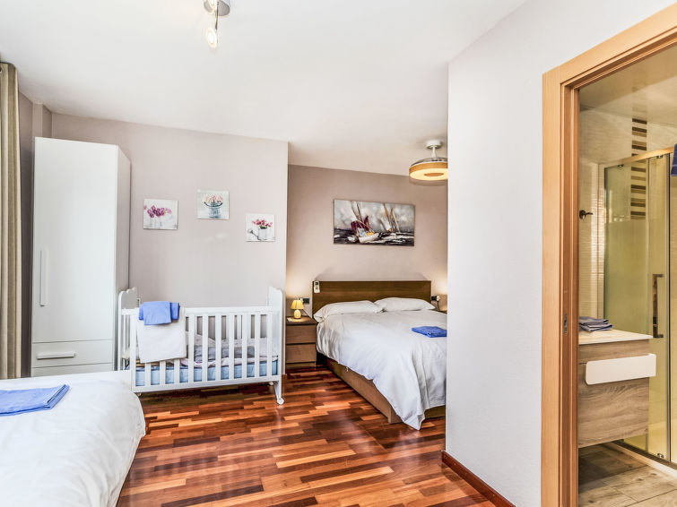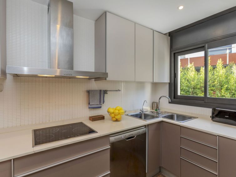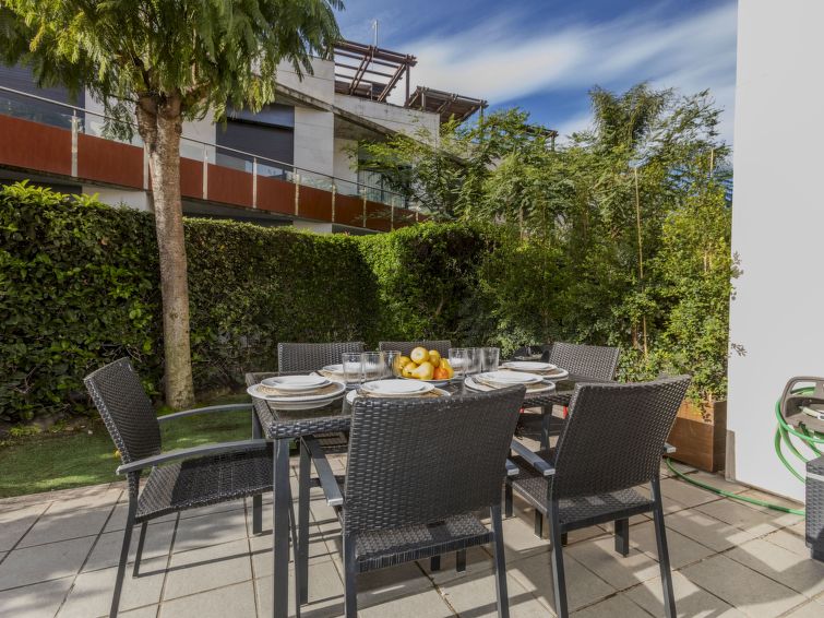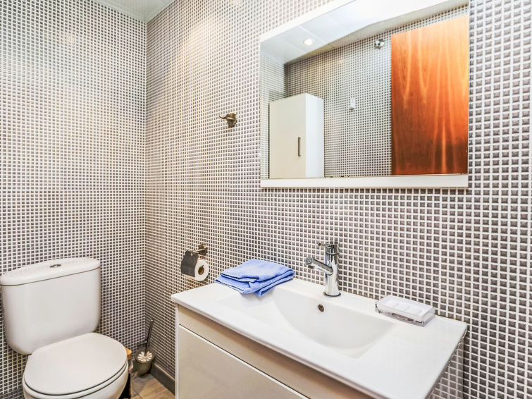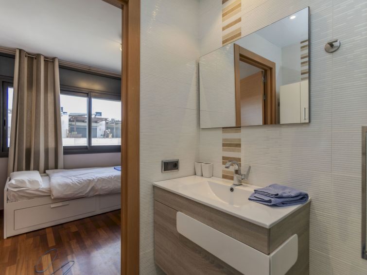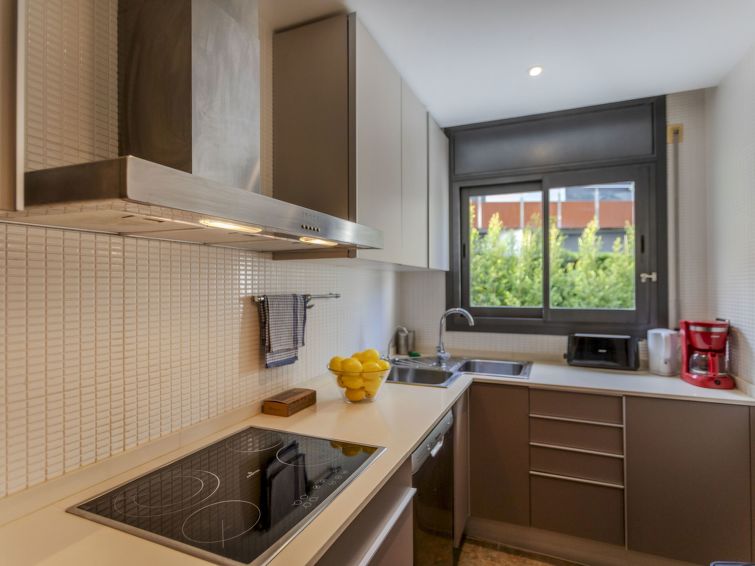 Meget moderne, fin resort "Sol Cambrils Park". I området, i en roligt, solrikt posisjon, 30 m fra sjøen, 30 m fra stranden, vei å krysse. Fellesbruk: tomt 10'000 m2 (inngjerdet), stor, vakker, velholdt hage med plen, 1 badebasseng, innendørs pool oppvarmt (22 x 65 m, dybde 60- 220 cm dyp, Sesongåpent: 01.Jan. - 31.Des. bassengets åpningstider: 10:00-23:00). Barnebasseng, utendørs dusj. I huset: badstu, treningsrom, boblebad, heis. Butikk, daglivarehandel, supermarked 600 m, kjøpesenter 12 km, restaurant, bar 200 m, bakeri 600 m, café 200 m, sykkelutleie 300 m, ølservering 200 m. Sporthavn 3 km, marina 3 km, golfbane(18 hull) 6 km, surfeskole 500 m, seileskole 3 km, rideskole 8 km. Attraksjoner i nærheten: Port Aventura 8 km, Aquopolis 9 km, Aquum Spa 9 km. Turstier La Mussara 35 km. Eieren godtar ikke noen ungdomsgrupper. Vennligst merk: objektnummer ES9582.600.6 ligger på samme tomt. Stille og rolig område. Stillhet og god oppførsel. The grounds have a sports court, suitable for football and basketball, 2 small tennis courts and a beach-volleyball court. Use of these courts is included in the rent.
