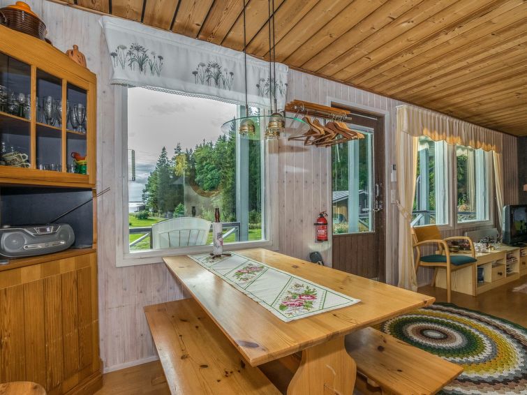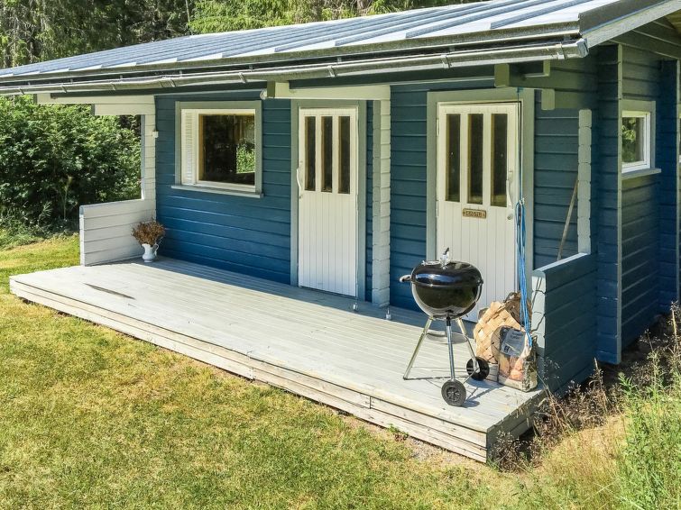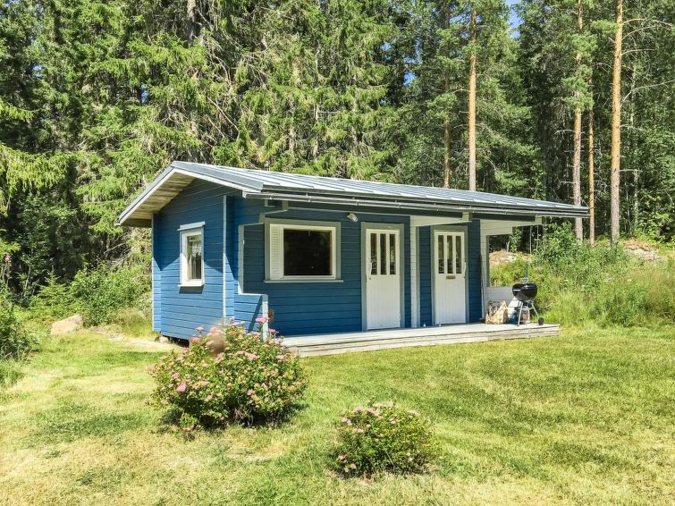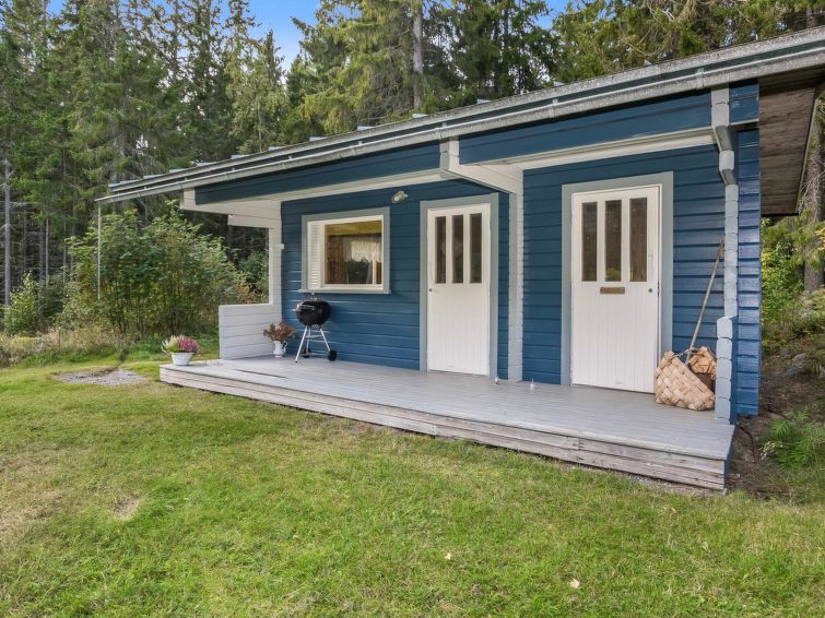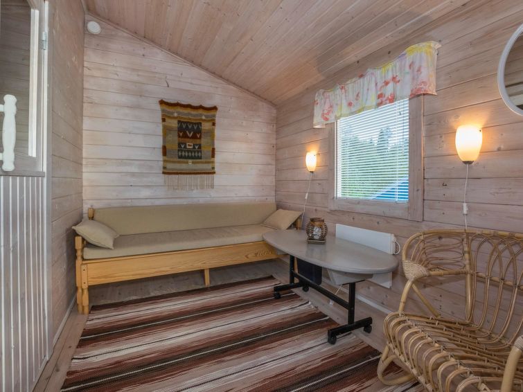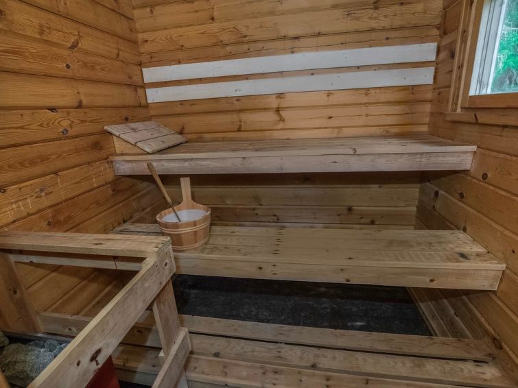Wooden building 1987, renovated 2016, living room/kitchen, bedroom bunk, bedroom double bed, washroom with WC and shower and open porch. Separate guest house/sauna building 32 m², in living room/kitchen double bed, sauna with electric stove, washroom, dressing room and open porch. Water to the sauna must be carried from the cottage.