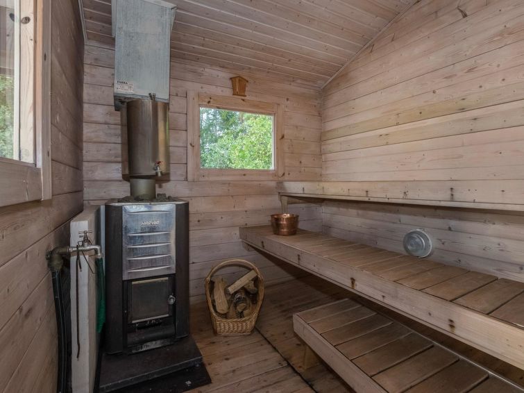 On sea shore new sauna building 18 m², wood-fired stove, dressing room, small porch, sea 10 m. Water pipe during summer, during winter water must be carried from the cottage. In dressing room extra double bed. Comfortable location for up to 2 families on holiday.