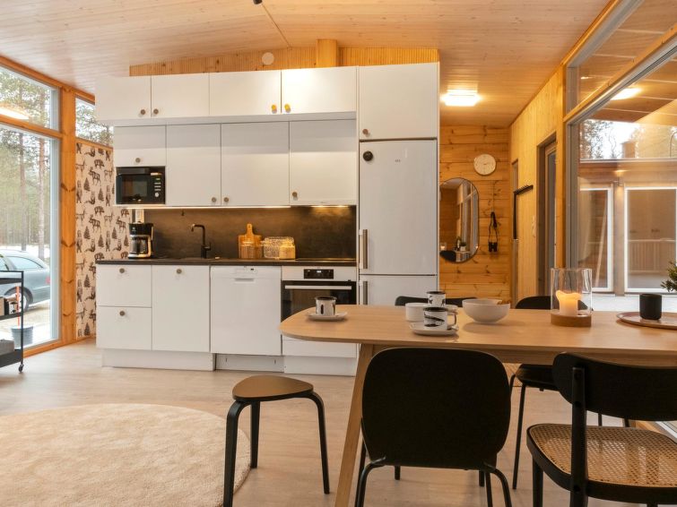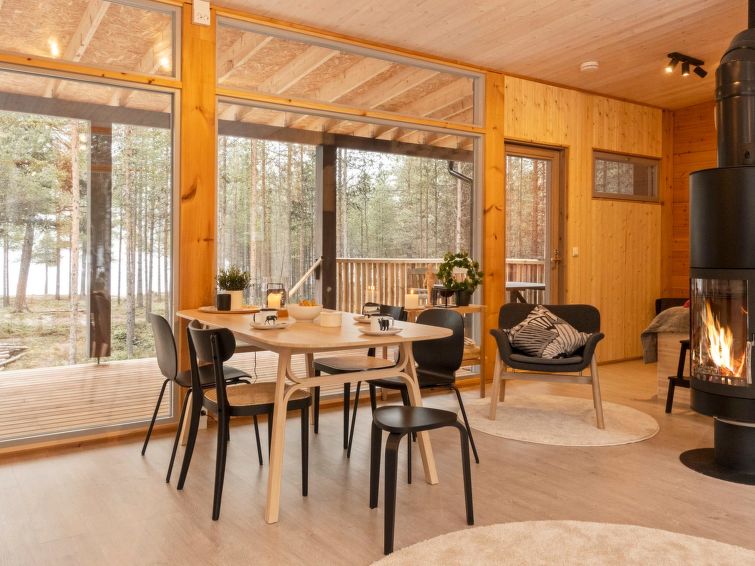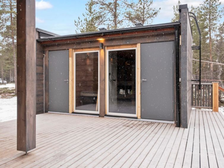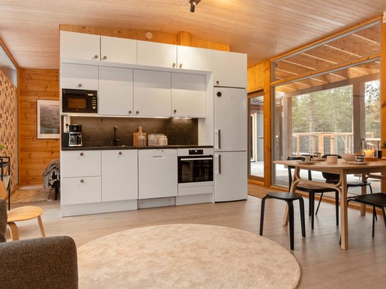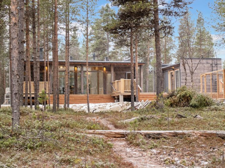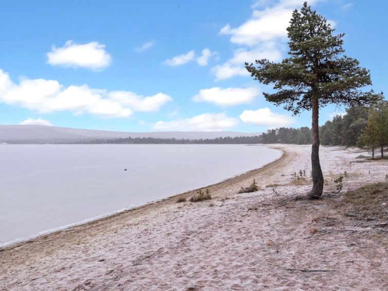Modern villa with amenities next to a magnificent sand beach. Views from the beach to fell Otsamotunturi. Fishing spots and hiking routes of the Inari hiking area nearby.