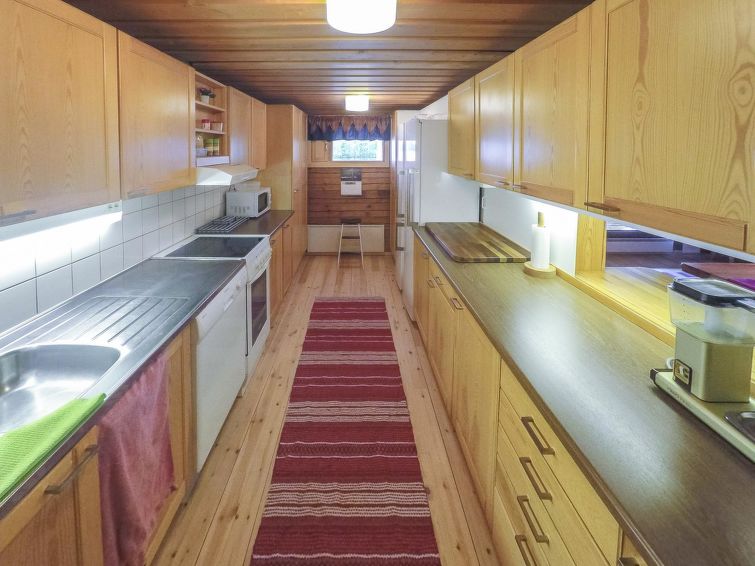 Additional information: Extra fee for sleeping cabins 250 e/cabin; please add "Extra costs" to Your reservation according to how many sleeping cabins You want to rent (two 4-persons cabins can be rented all year round and one 2-persons cabin can be rented only during June-August). The final cleaning fee which is included in the accommodation price, does not include the cleaning of the sleeping cabins (100 e and it will be added to the booking). Further information on www.sompsanniemi.fi. Tableware for 24 persons. Two showers in bathroom.