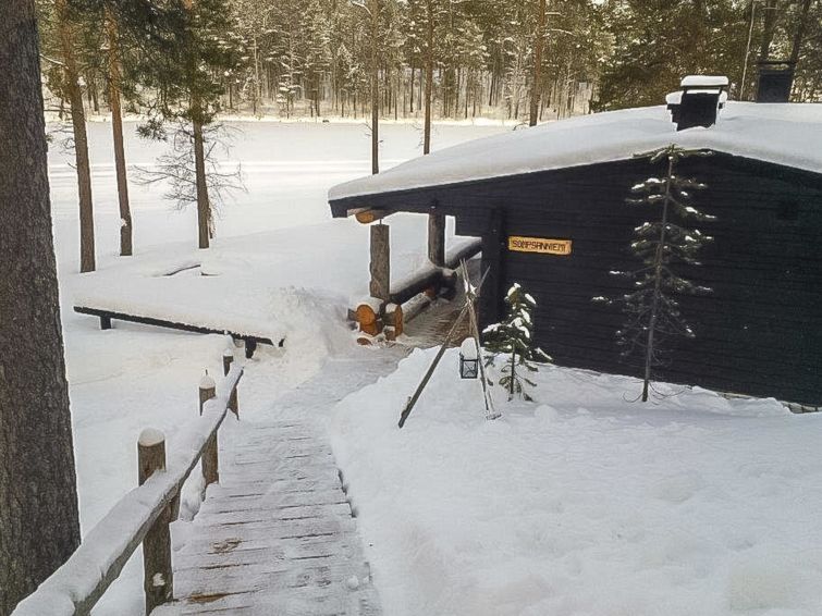 In the main building maximum number of persons is 16. In case you will be more, please book additionally sleeping cabins (additional fee). On the yard area there are 3 log-built, warm sleeping cabins; two so called "Aurora cabins" (4 persons/cabin) are available all year round and one sleeping cabin (for 2 persons) is available only for summer use June-August, price is 250 eur/cabin/1-7 nights + final cleaning of sleeping cabin/cabins is totally 100 eur/1-7 nights. Fee for final cleaning will be added by the Lomarengas sales staff. Distance from the main building to the Aurora cabins is approximately 150 m and for summer cabin approximately 200 m. Spacious cottage situated on Sompsanniemi cape on Lake Alakitkajärvi.